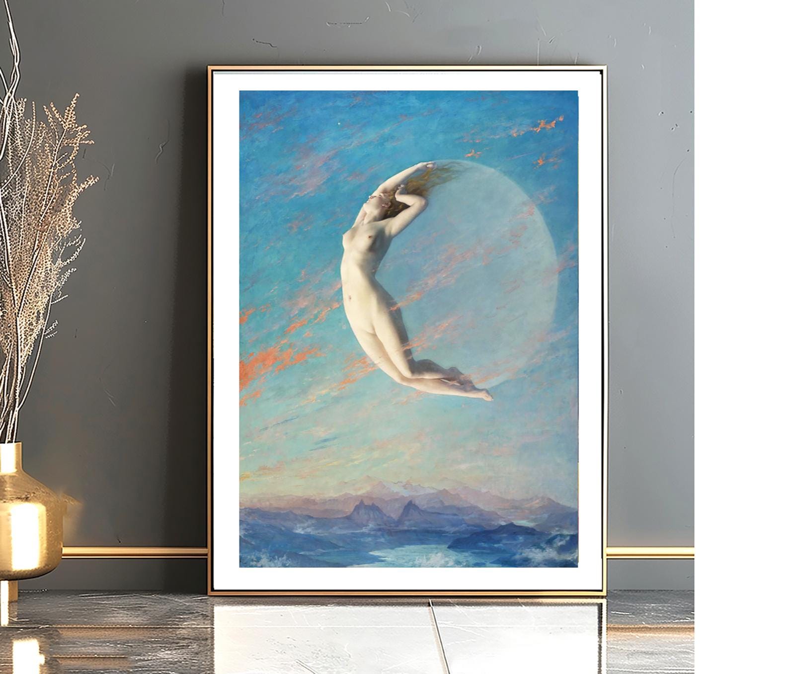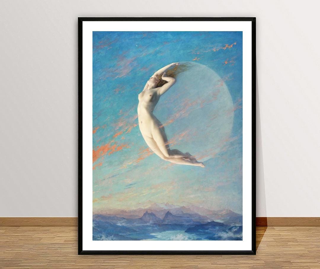 Selene Moon Goddess Art Print: Albert Aublet Mythological Wall Decor