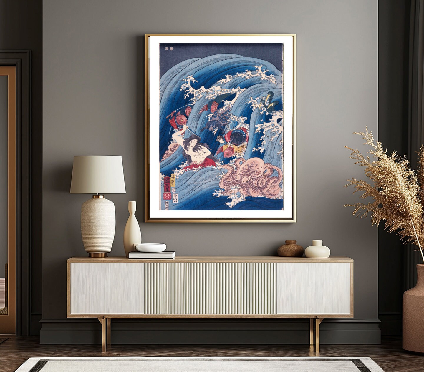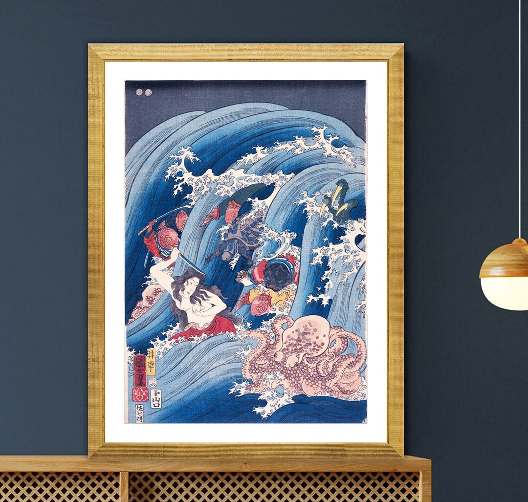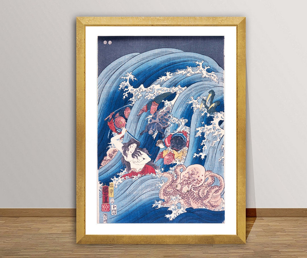 Kuniyoshi Japanese Art Print: Princess Tamatori and the Dragon Palace
