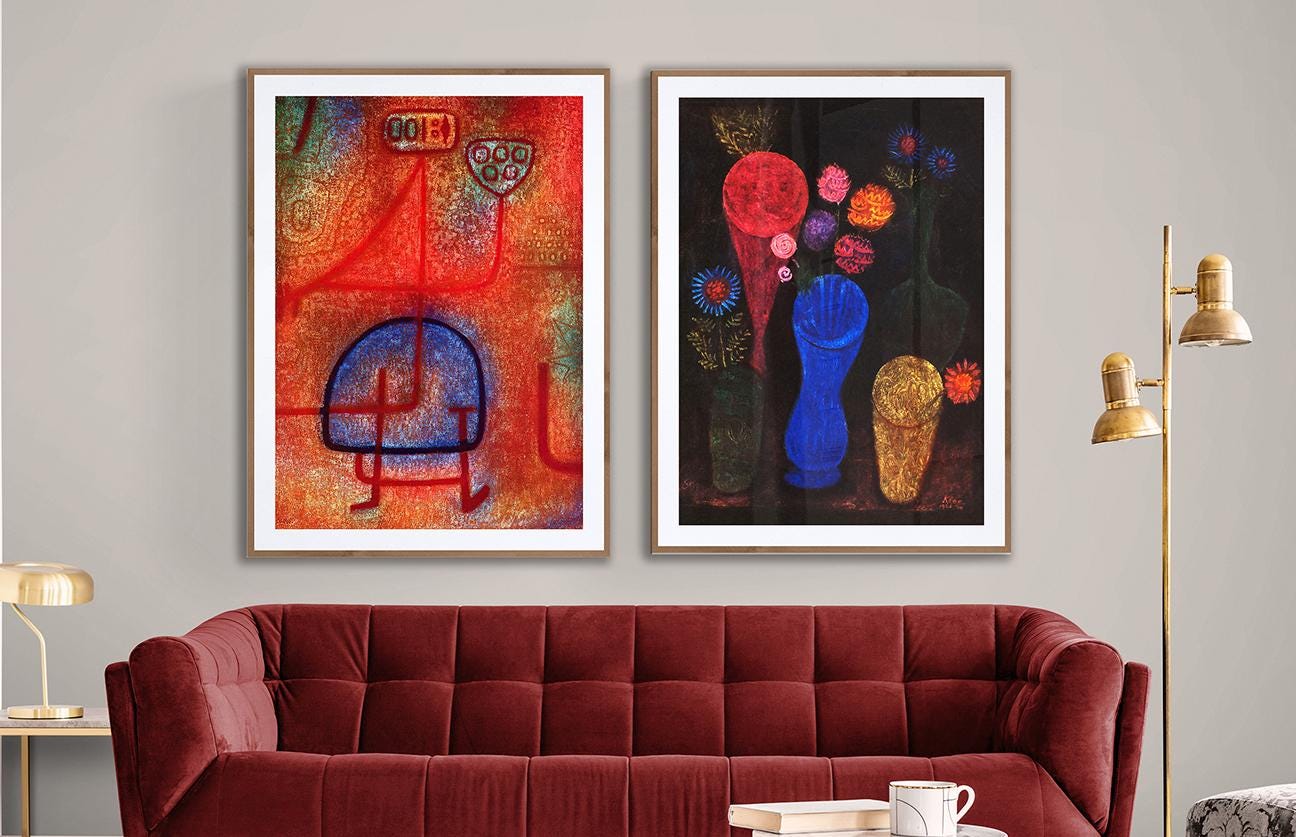 Set of 2, Paul Klee Collection La Belle Jardiniere, Flowers in Glasses Abstract Fine Art Prints - Poster Paper or Canvas Print / Gift Idea