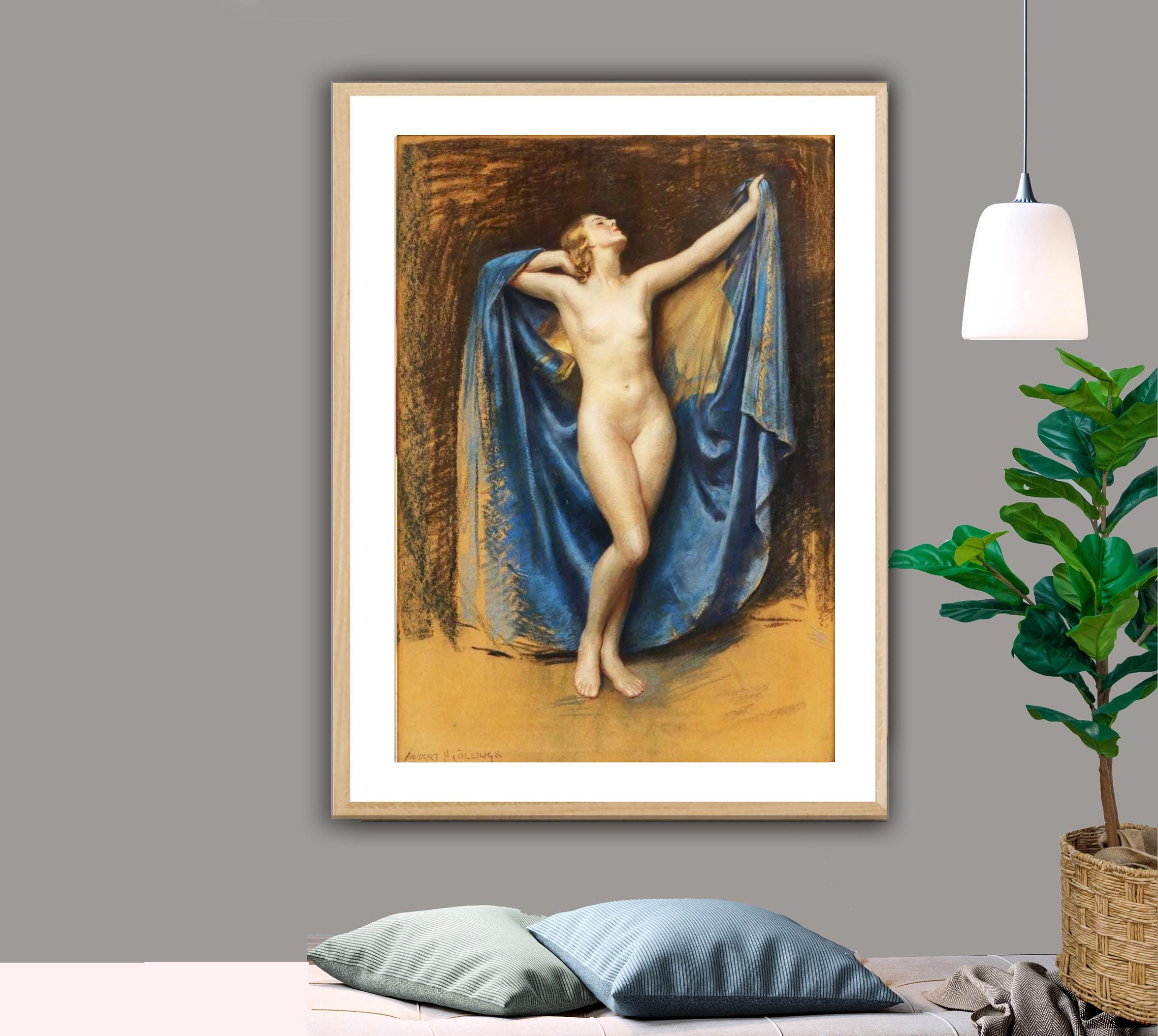 The Blue Cloak by Albert Henry Collings Fine Art Print - Poster Paper or Canvas Print