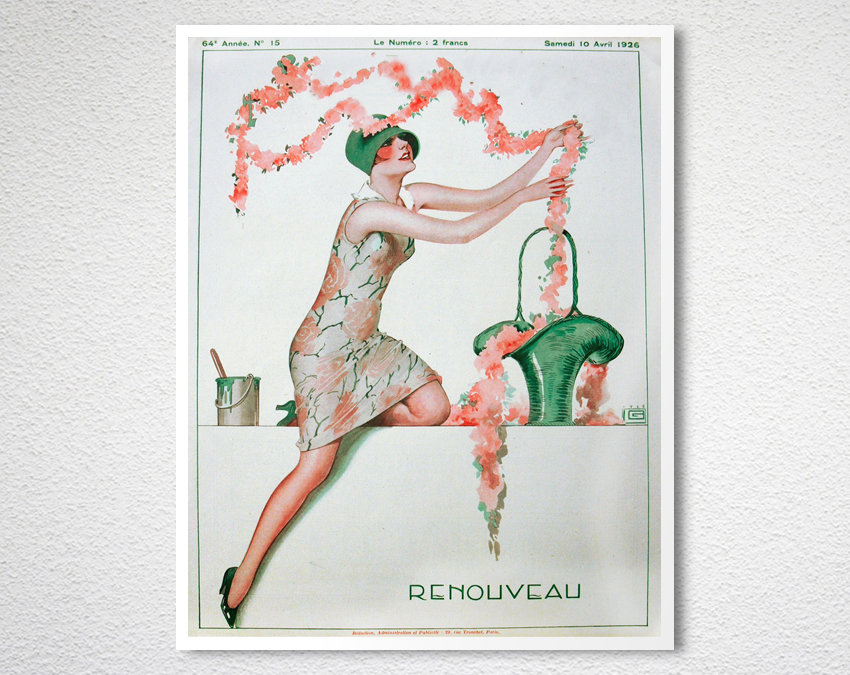 Magazin Cover, Renouveau by George Leonnec, Vintage Poster, Illustration, Fashion Wall Art, Parisian Lifestyle Artwork