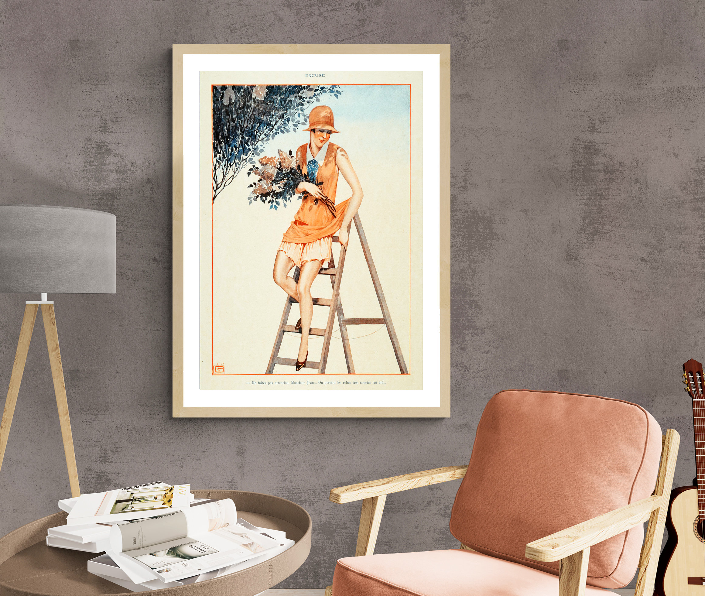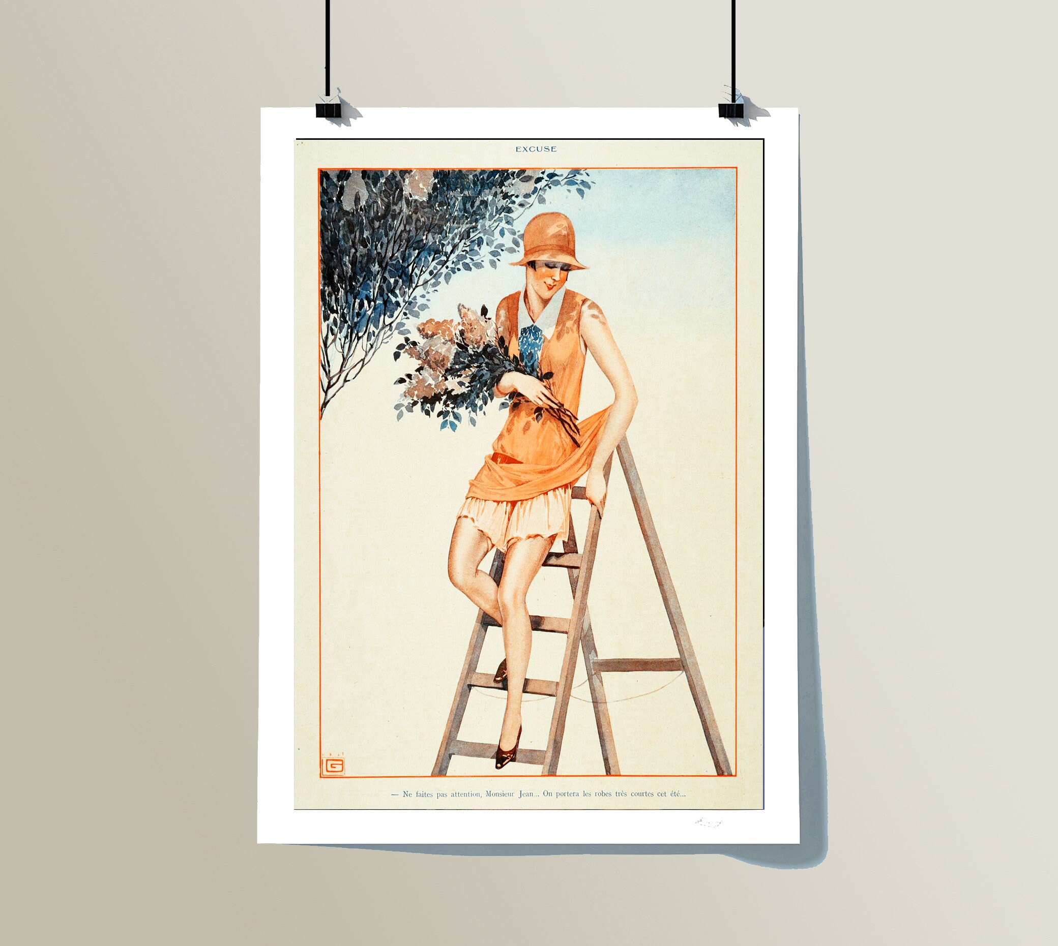 Excuse by George Leonnec Fashion Magazine Vintage Poster, Illustration, Fashion Wall Art, Parisian Lifestyle