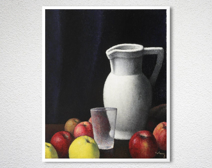 Felix Elie Tobeen Still Life Art Print: White Pitcher & Apples