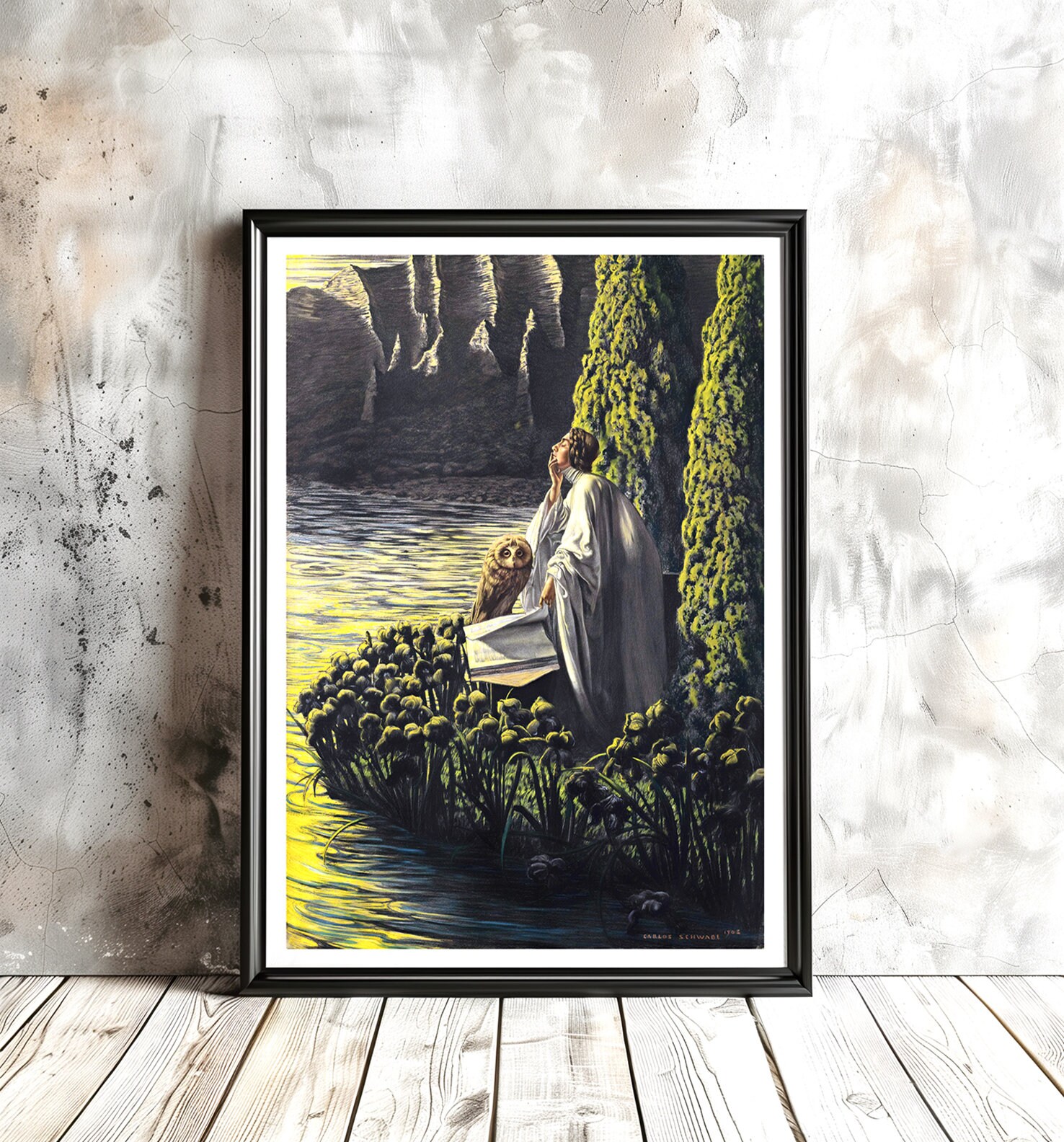 GICLEE printed on high quality paper, cotton canvas or adhesive sticker paper. A high quality reproduction of painting by Carlos Schwabe. Professional packaging for safe shipping. Natural white border will be added to the image for mounting and framing.