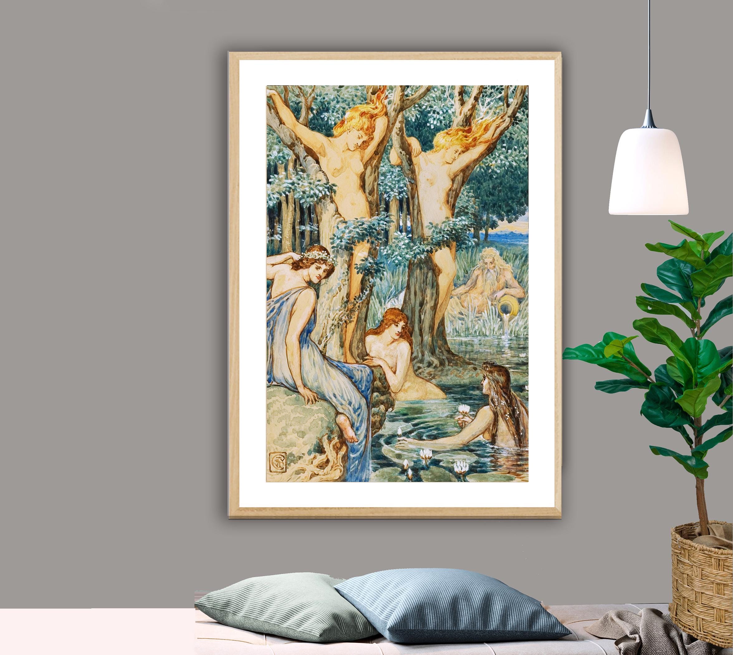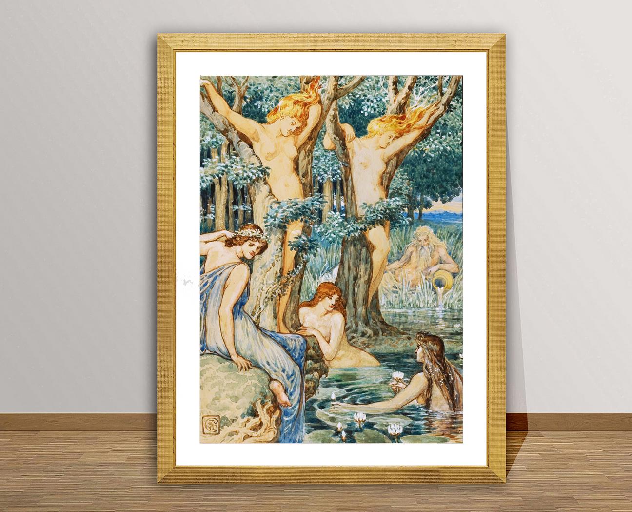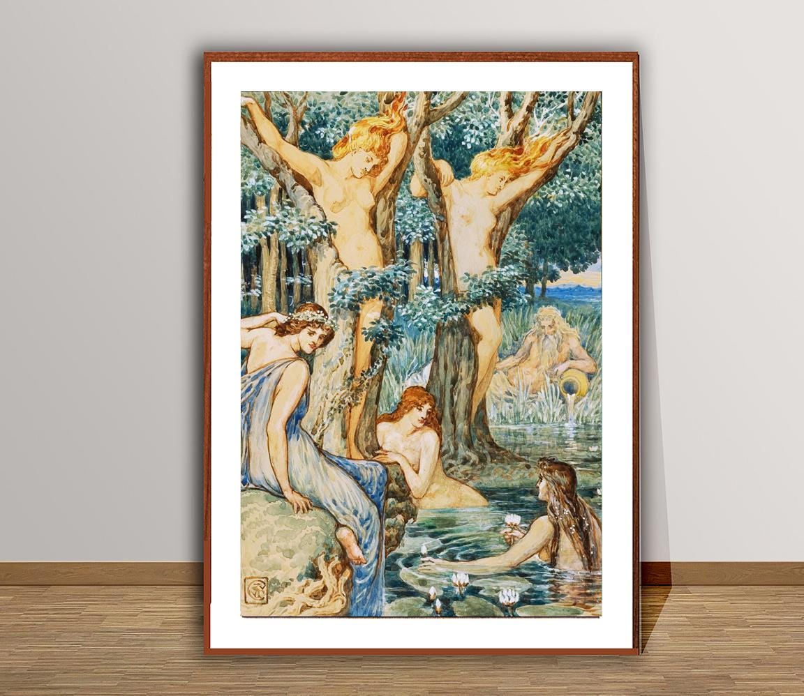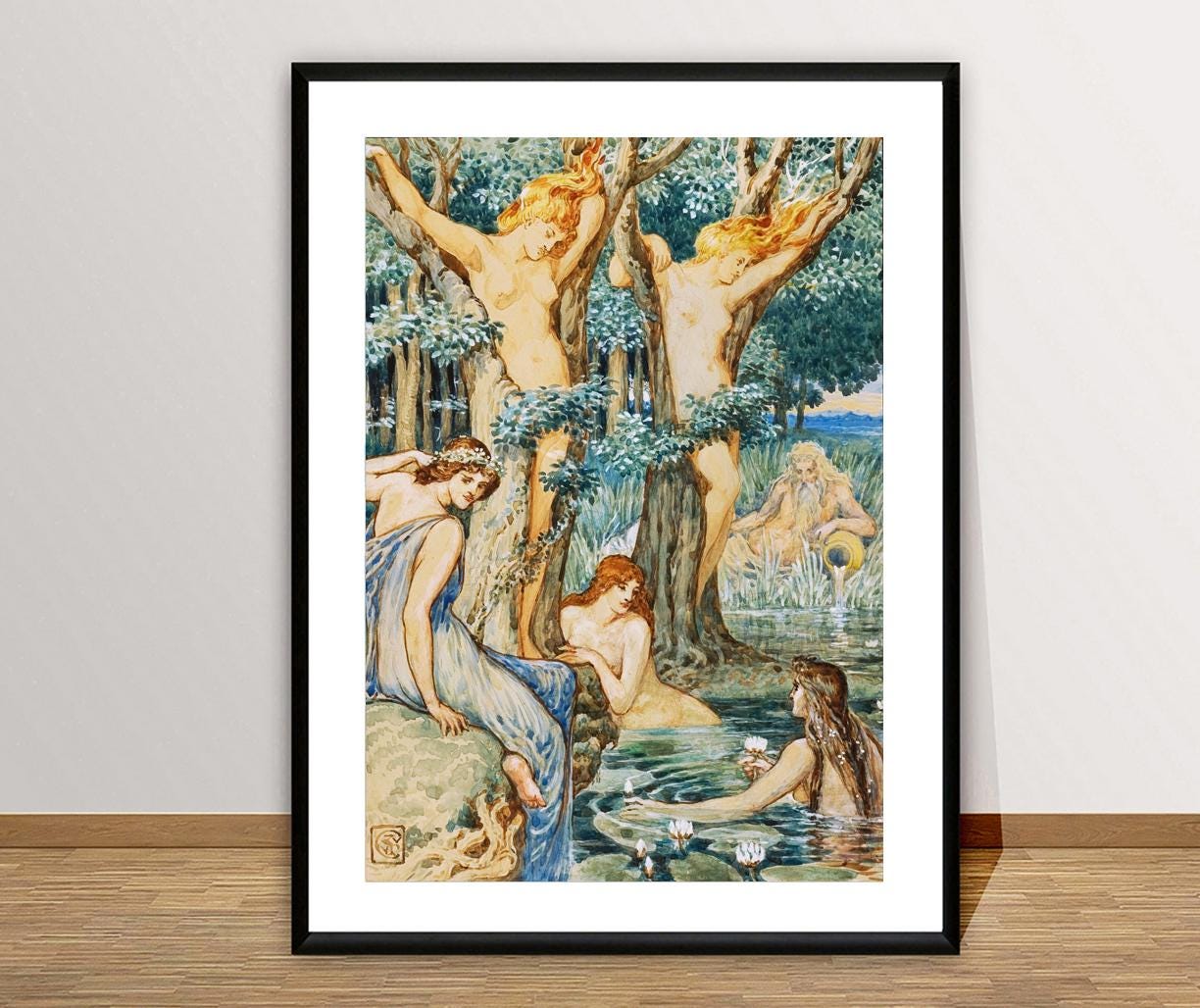 Walter Crane Art Print: Nyads and Dryads Mythological Wall Decor
