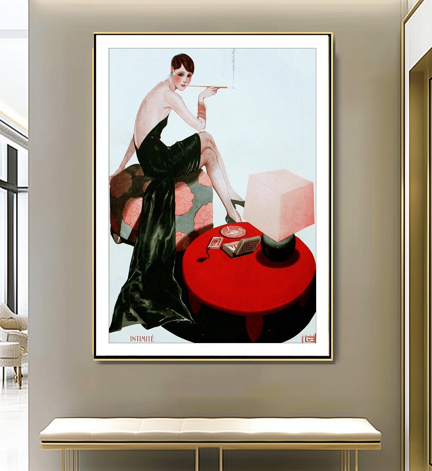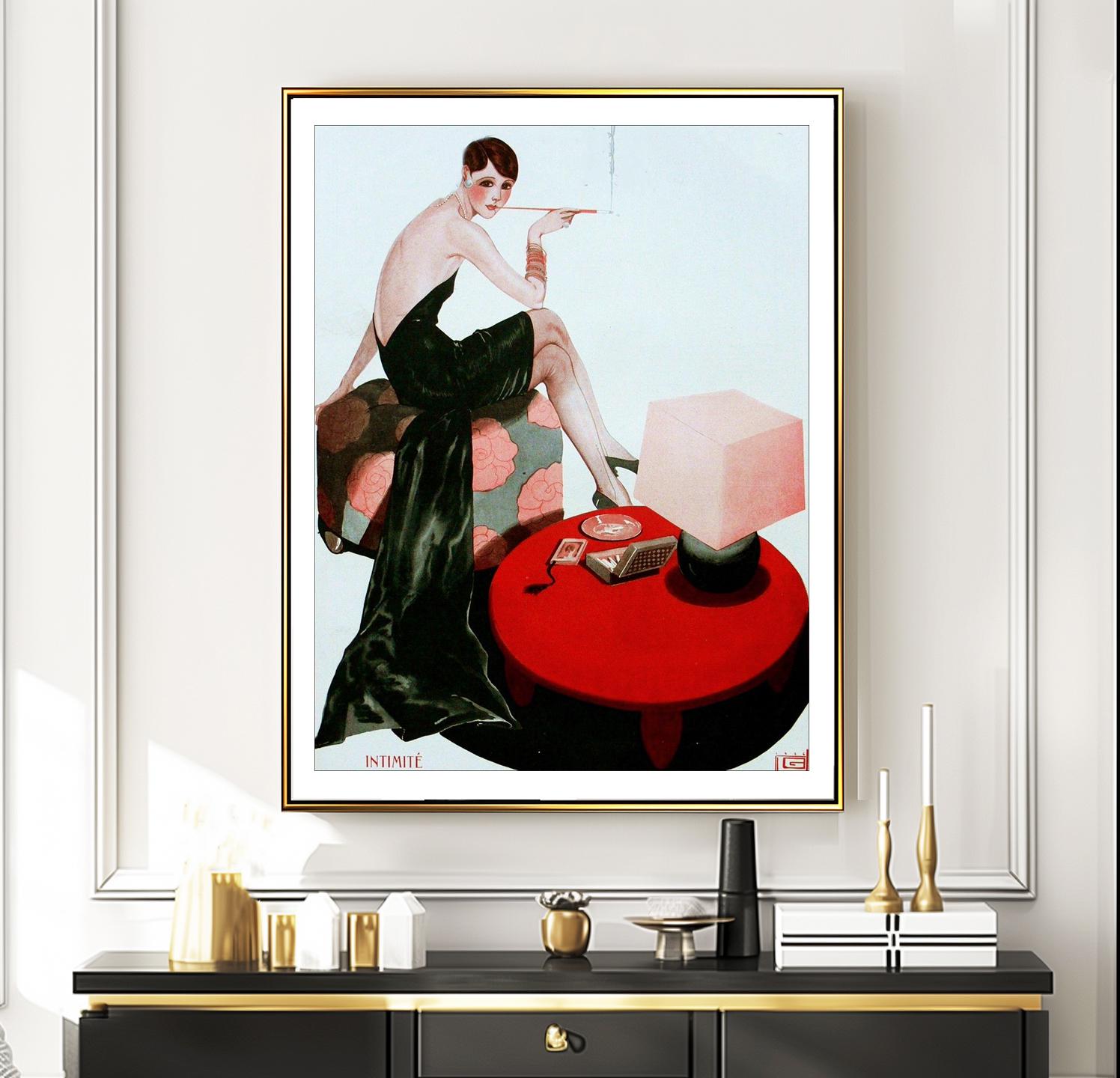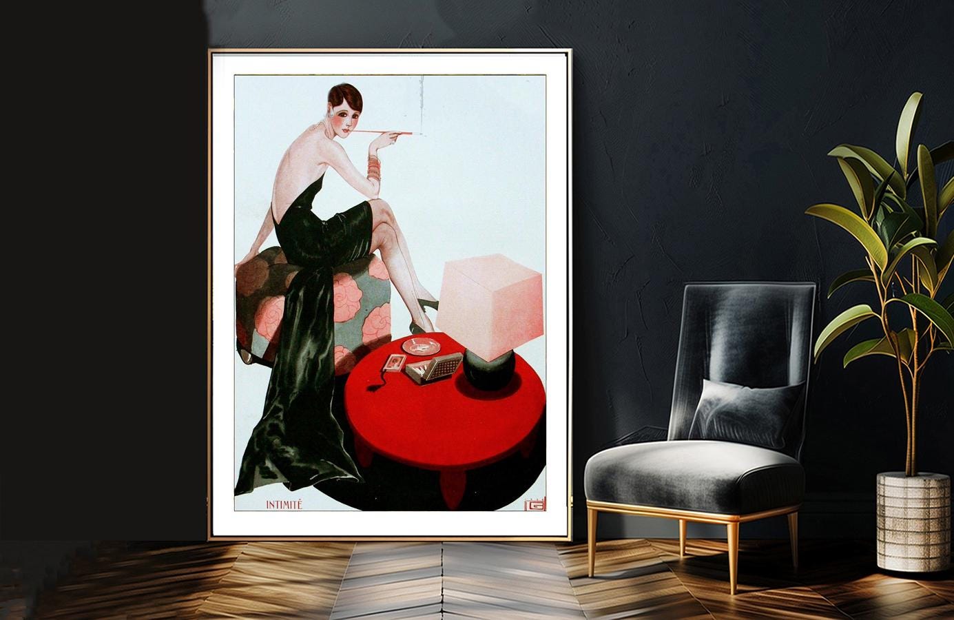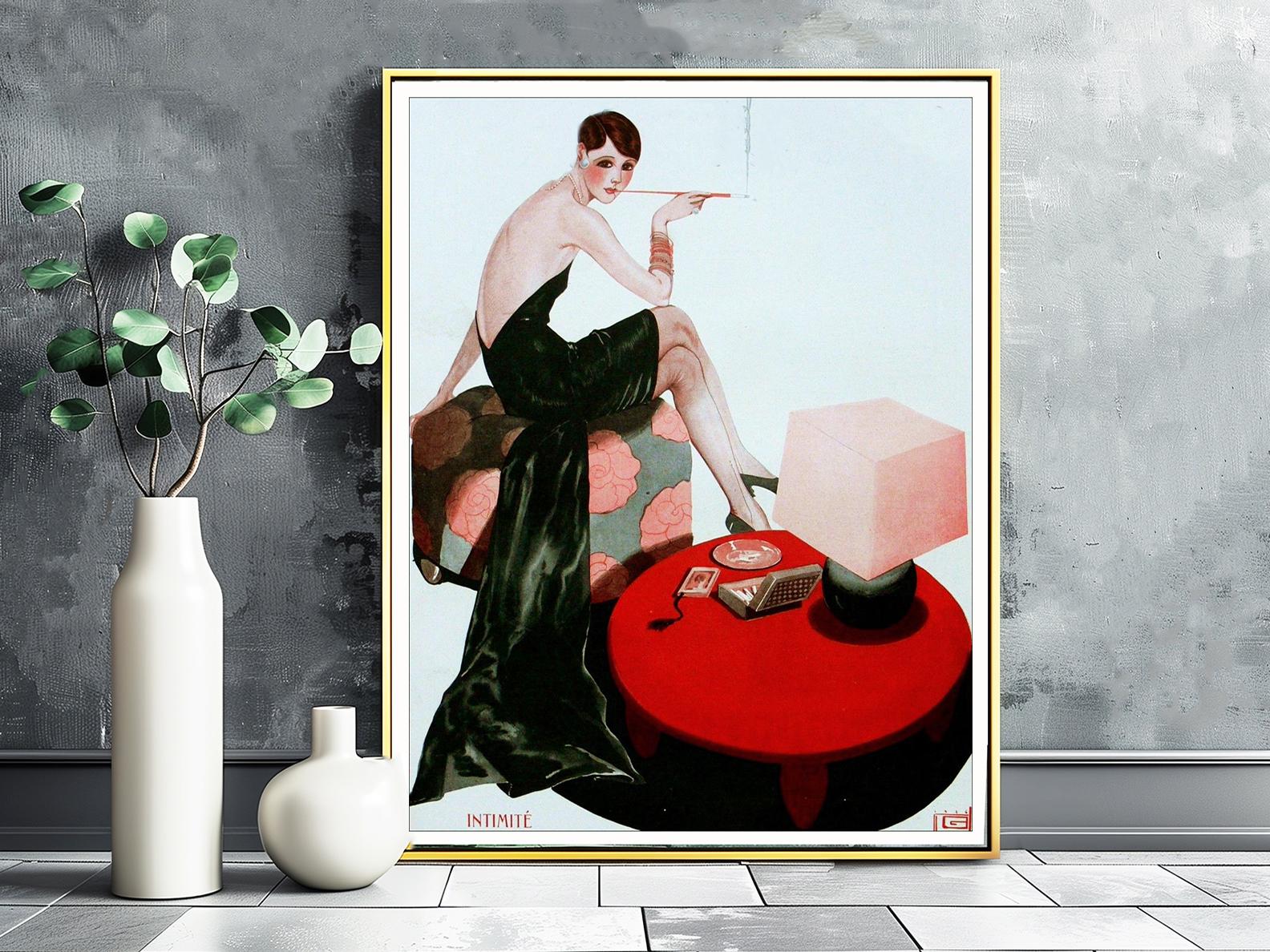 Intimite by George Leonnec Fashion Magazin Vintage Poster, Illustration, Fashion Wall Art, Parisian Lifestyle Artwork - Poster Paper, Canvas Print
