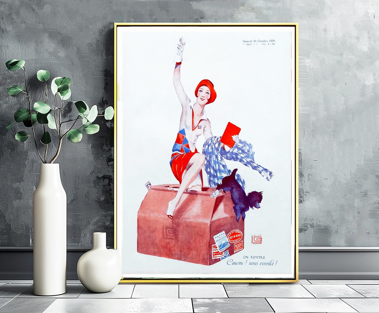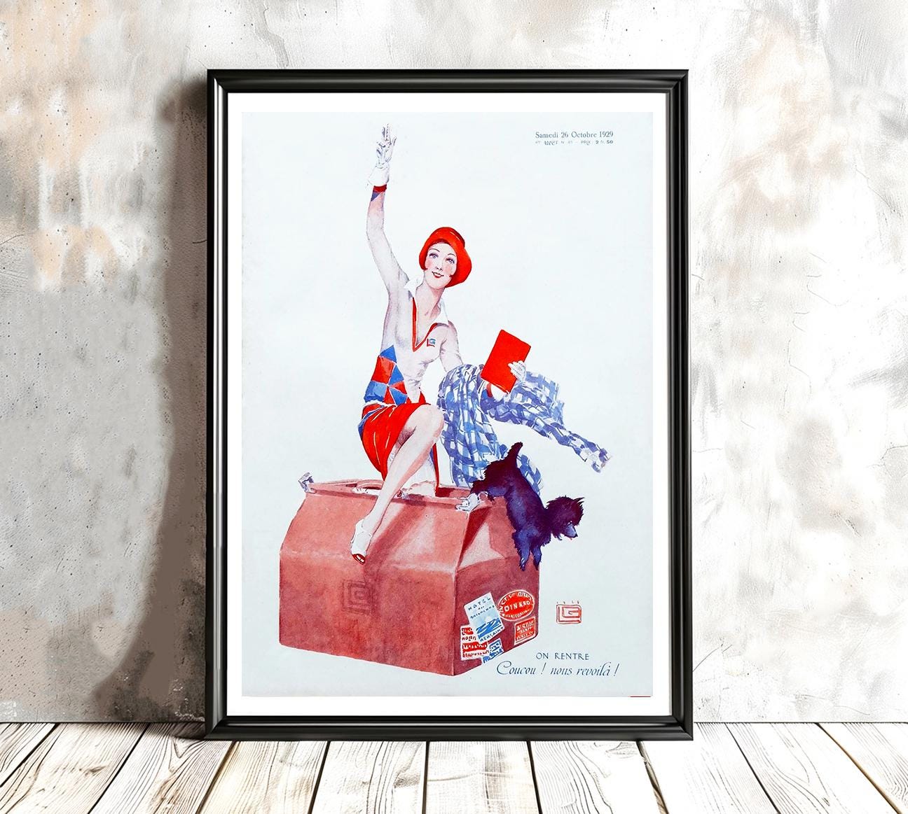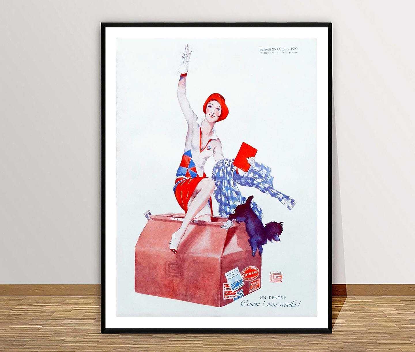 On Rentre, Coucou! Nous Revoila (We're Going Home, Hello! Here We Are Again) George Leonnec Fashion Magazine Vintage Poster - Poster Paper, Canvas Print