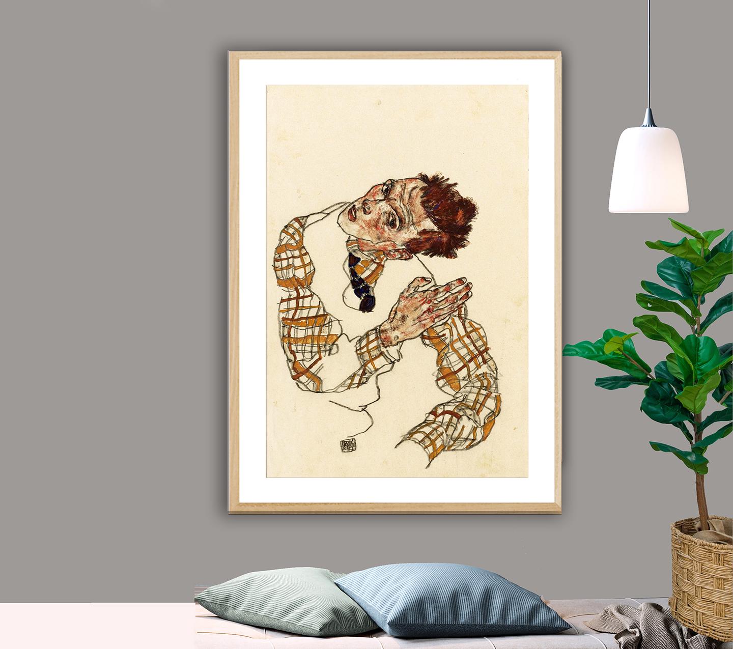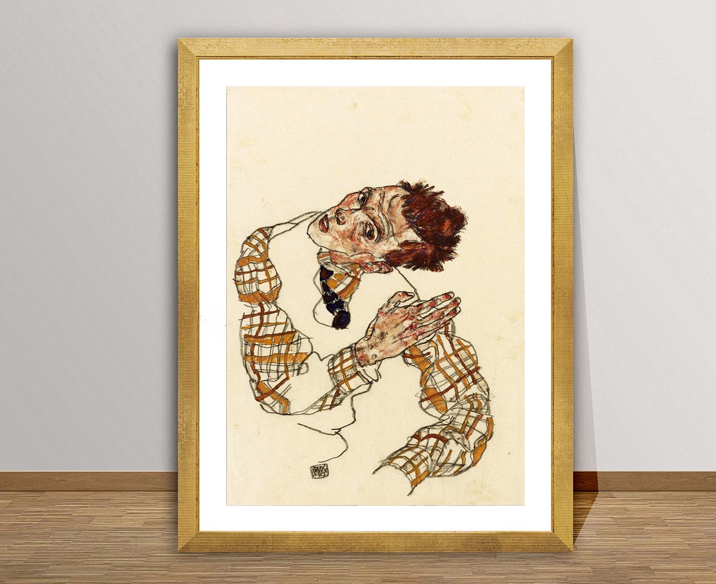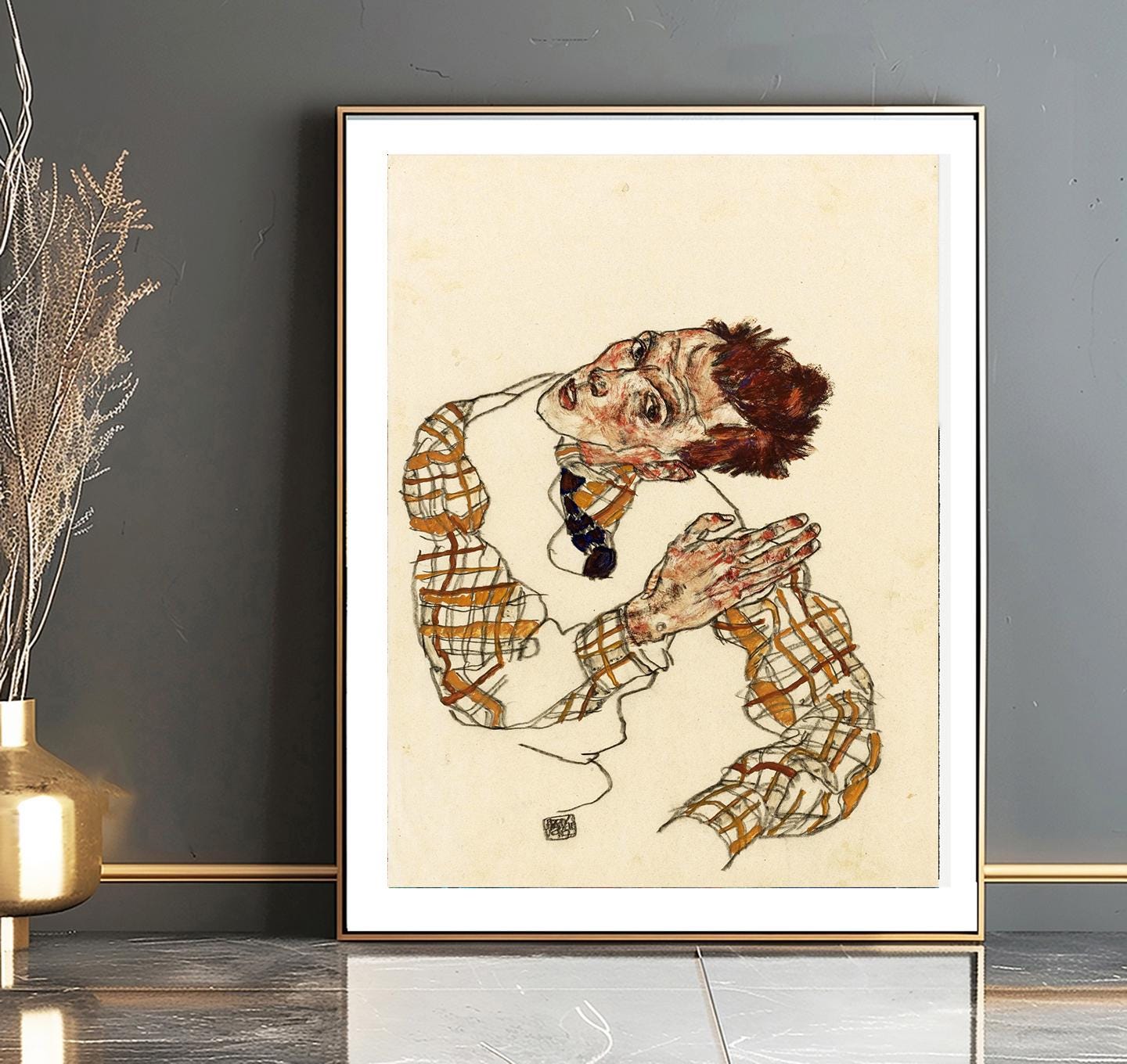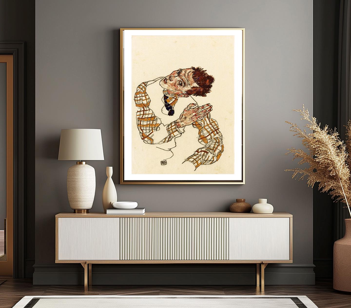 Self Portrait with Checkered Shirt by Egon Schiele Fine Art Print - Poster Paper or Canvas Print / Gift Idea / Wall Decor