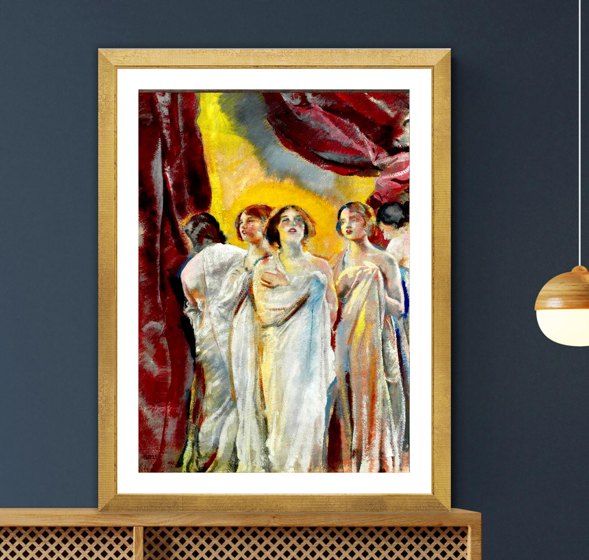 "Five Singing Girls" is a captivating watercolor painting by British artist Charles Sims (1873–1928).