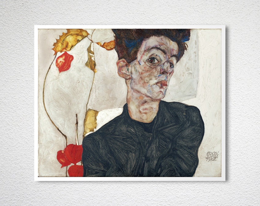 Self Portrait with Physalis by Egon Schiele Fine Art Print - Poster Paper or Canvas Print / Gift Idea / Wall Decor