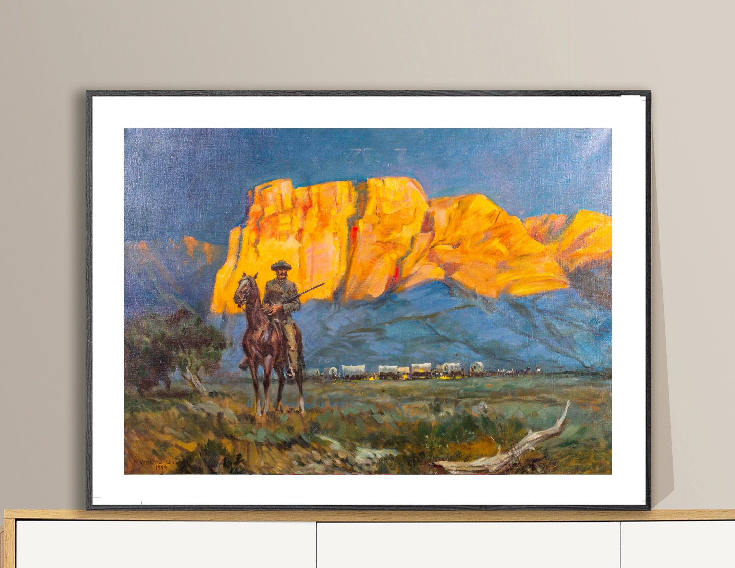 Printed on high quality paper, cotton canvas or adhesive sticker paper. A high quality reproduction of painting by Maynard Dixon. Professional packaging for safe shipping. Natural white border will be added to the image for mounting and framing.