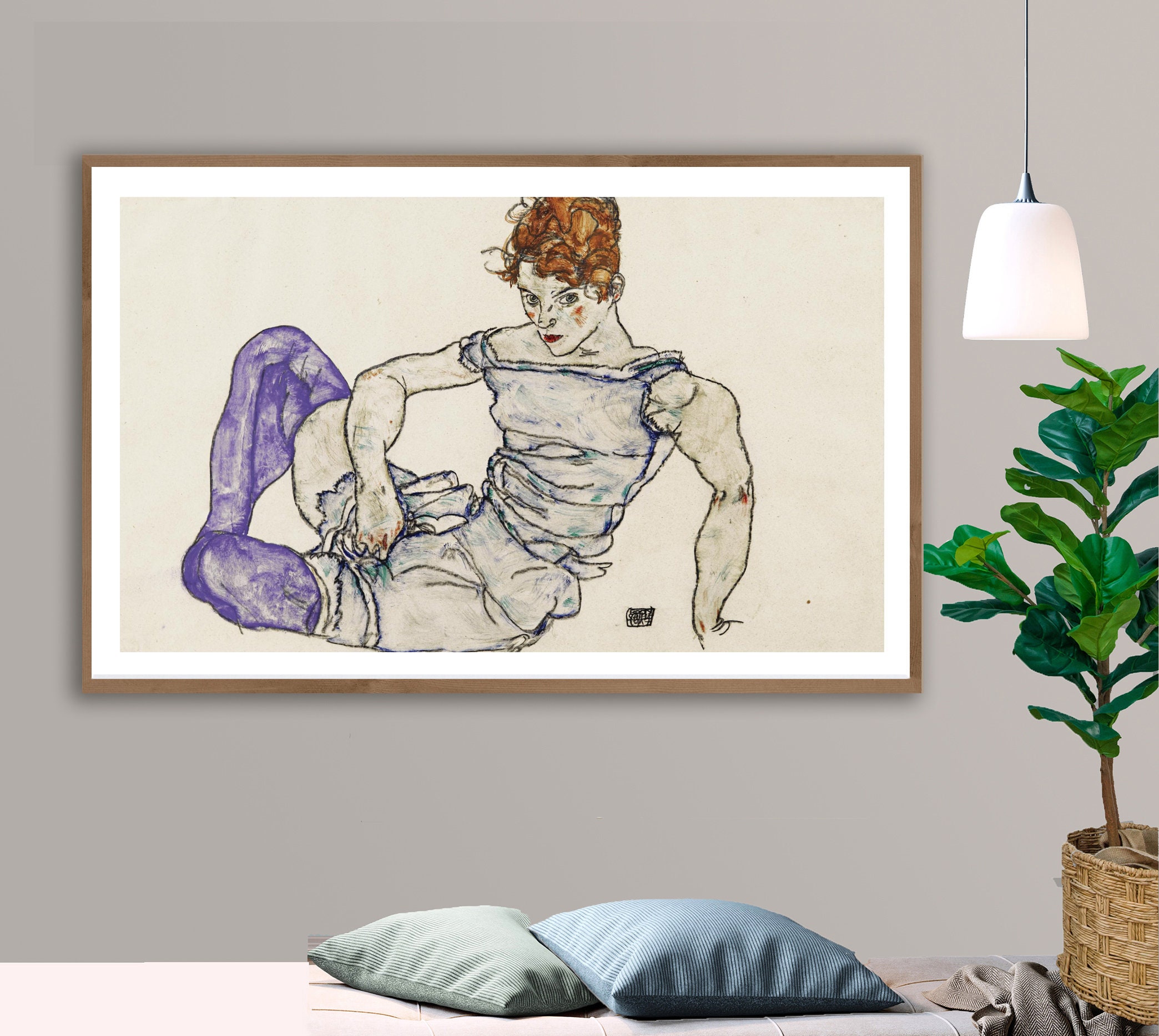Seated Woman in Violet Stockings by Egon Schiele Fine Art Print, Expressionist Poster, Figurative Artwork, Modern Wall Décor