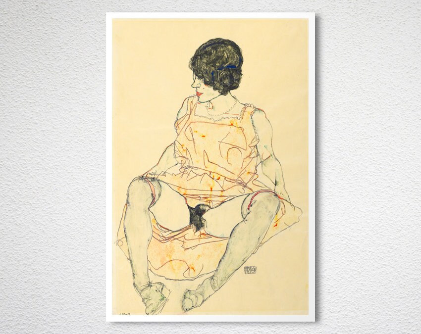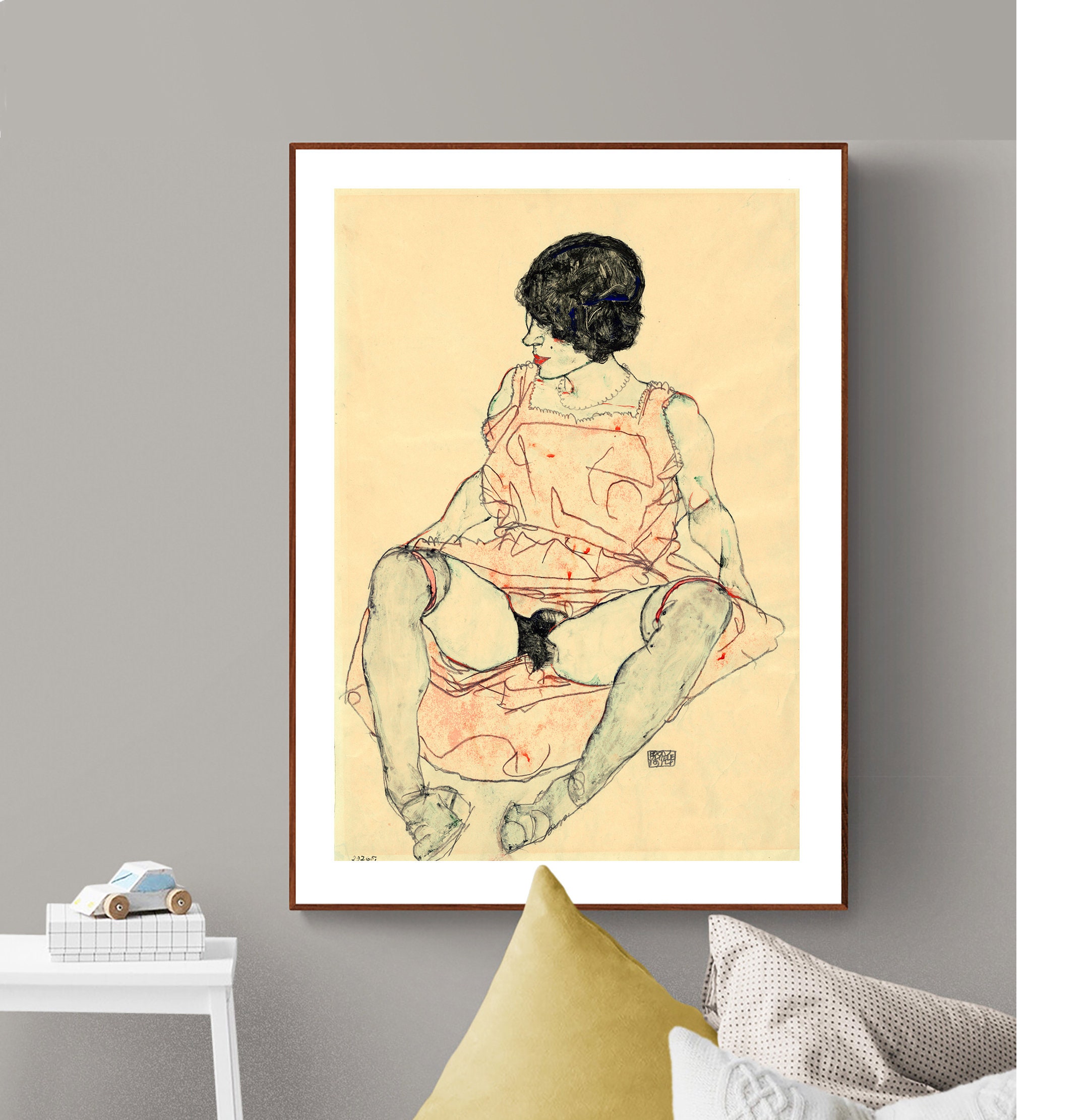 Seated Woman with Pushed Up Dress by Egon Schiele, Fine Art Print, Expressionist Poster, Modern Wall Décor