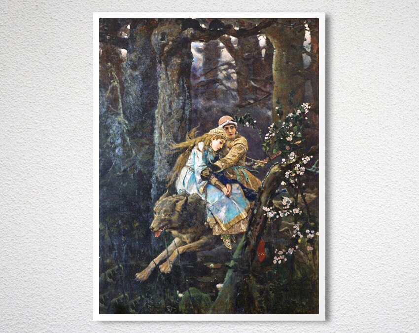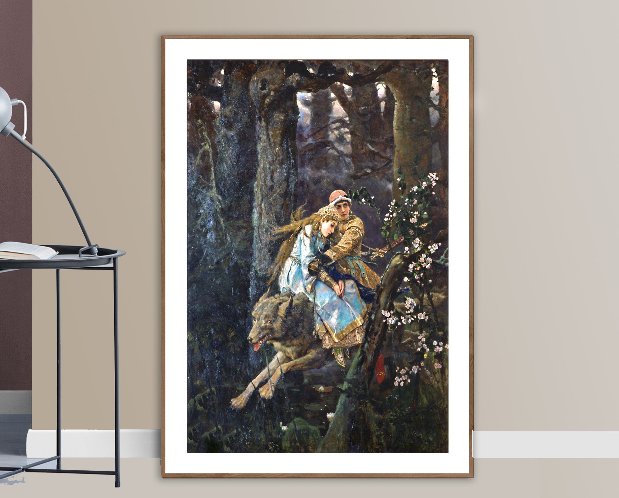 Prince Ivan Riding on Grey Wolf by Viktor Mikhailovich Vasnetsov Art Print - Poster Paper or Canvas Print / Gift Idea