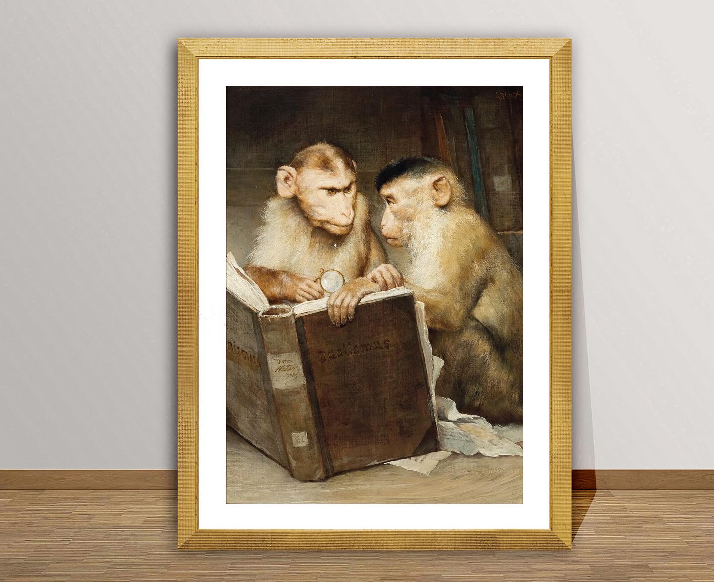 The Scholars Art Print by Gabriel Cornelius Ritter: Funny Monkeys Reading, Humorous Fine Art
