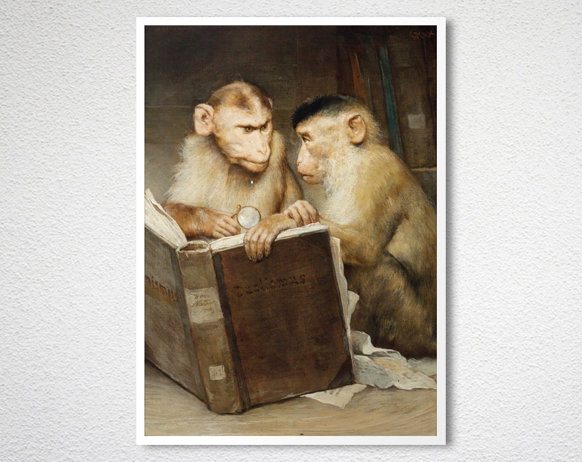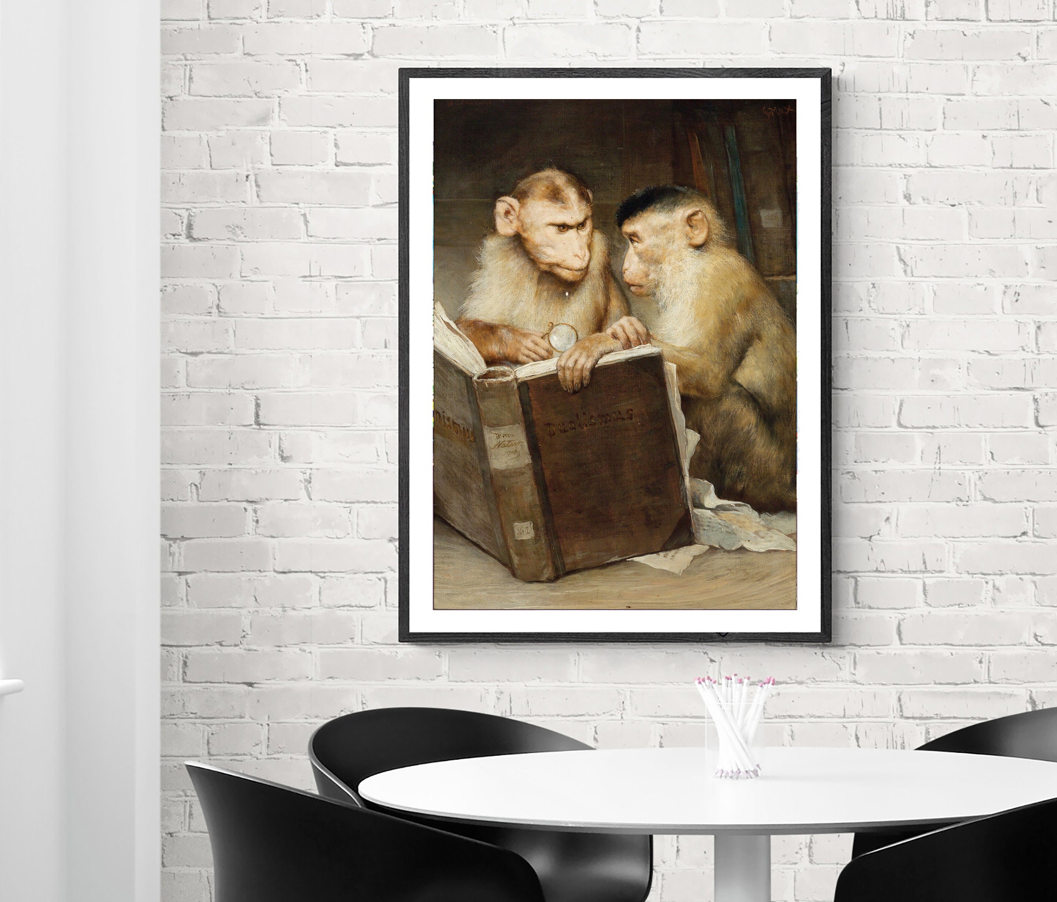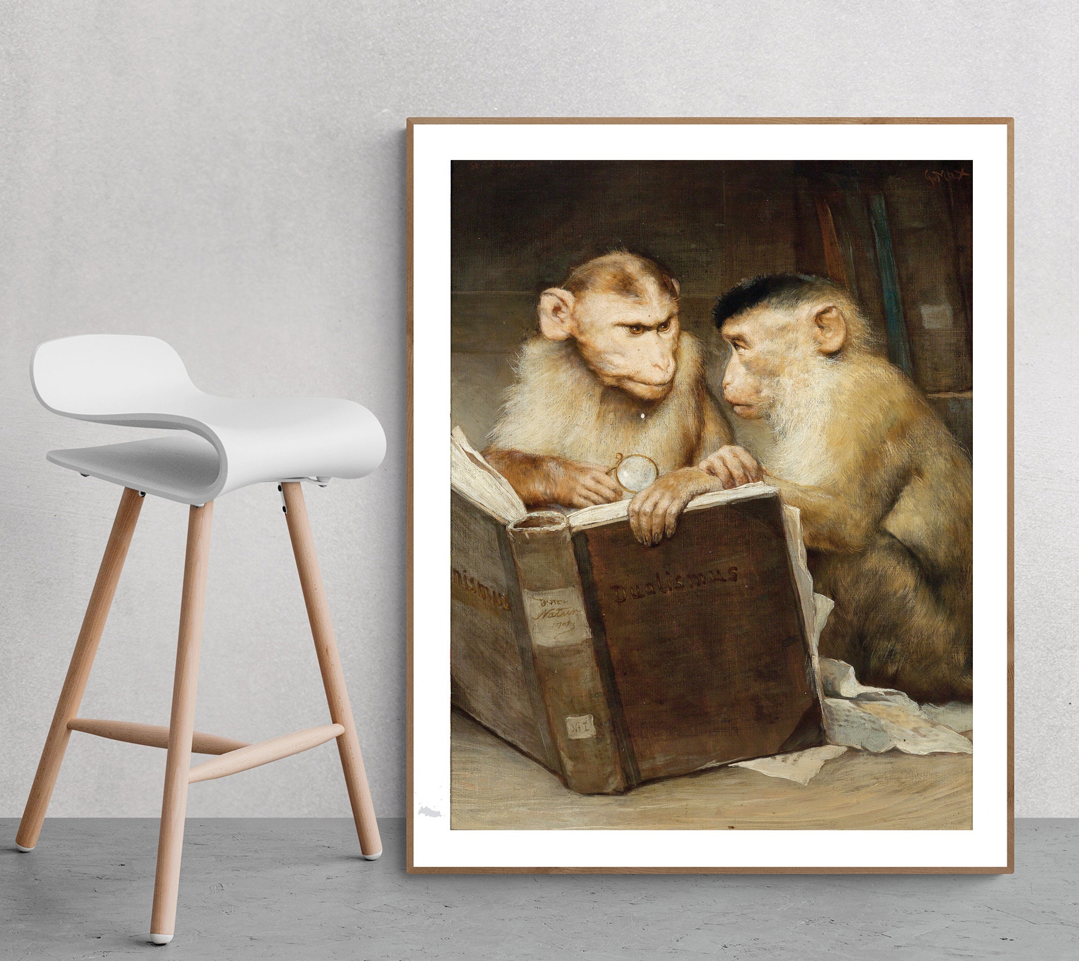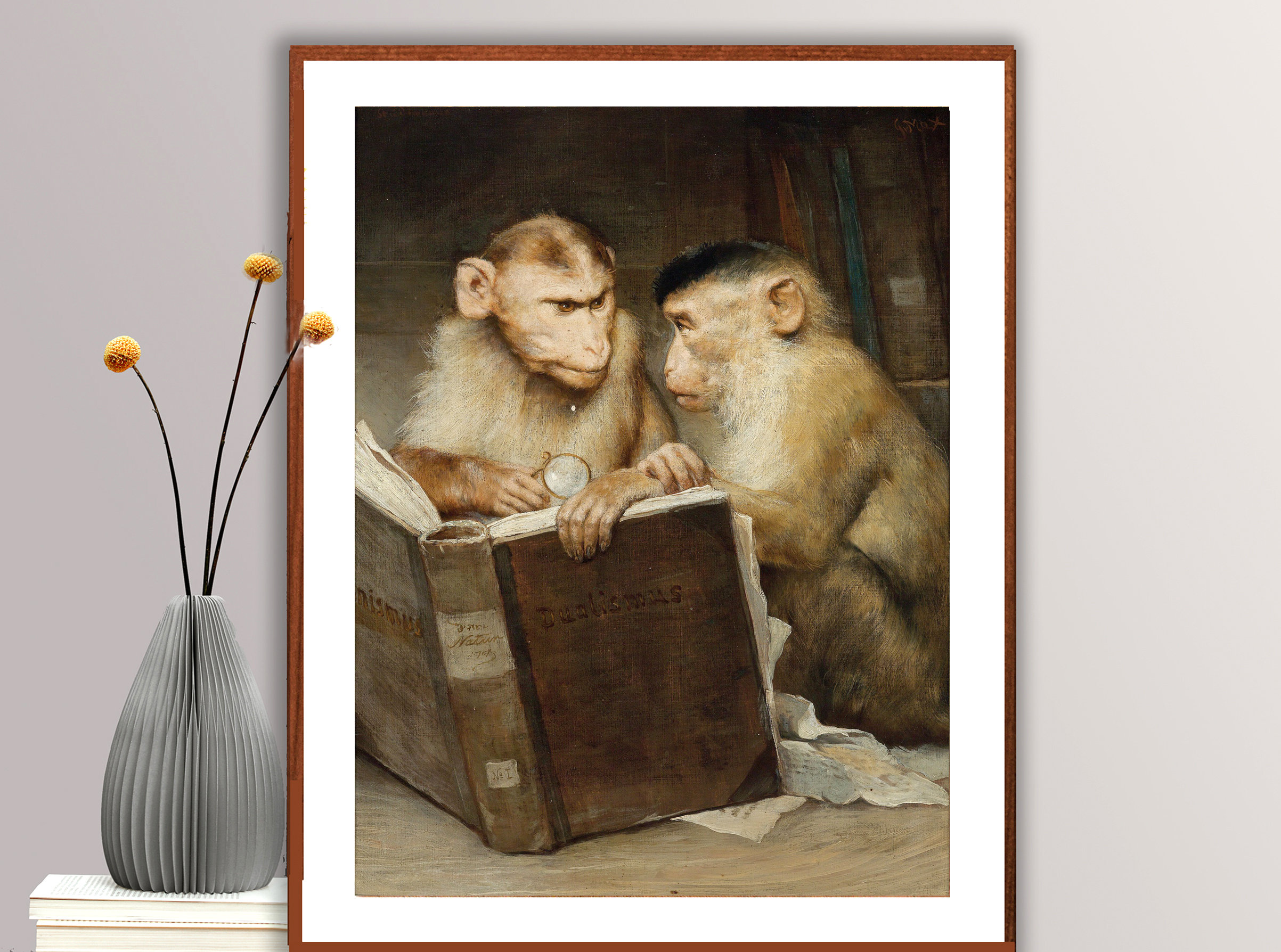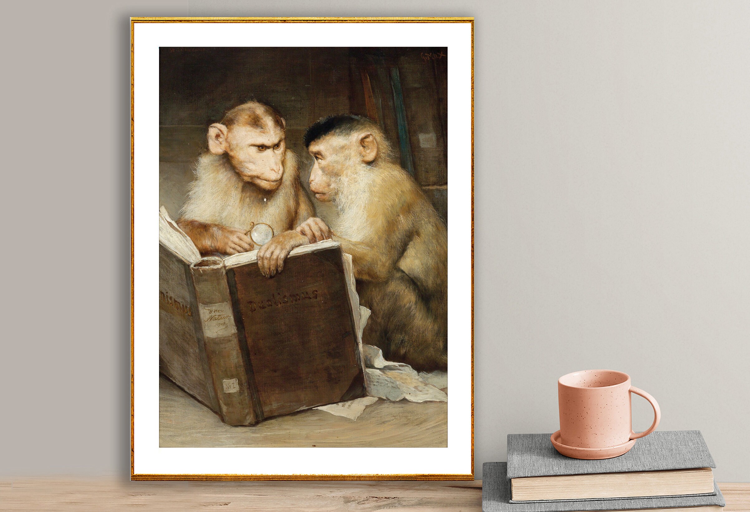 The Scholars Art Print: Funny Monkeys Reading, Humorous Fine Art