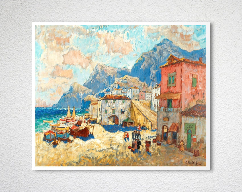 A Coastal Town in Spain by Konstantin Gorbatov Fine Art Print - Poster Paper or Canvas Print / Wall Decor