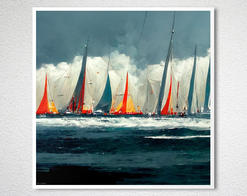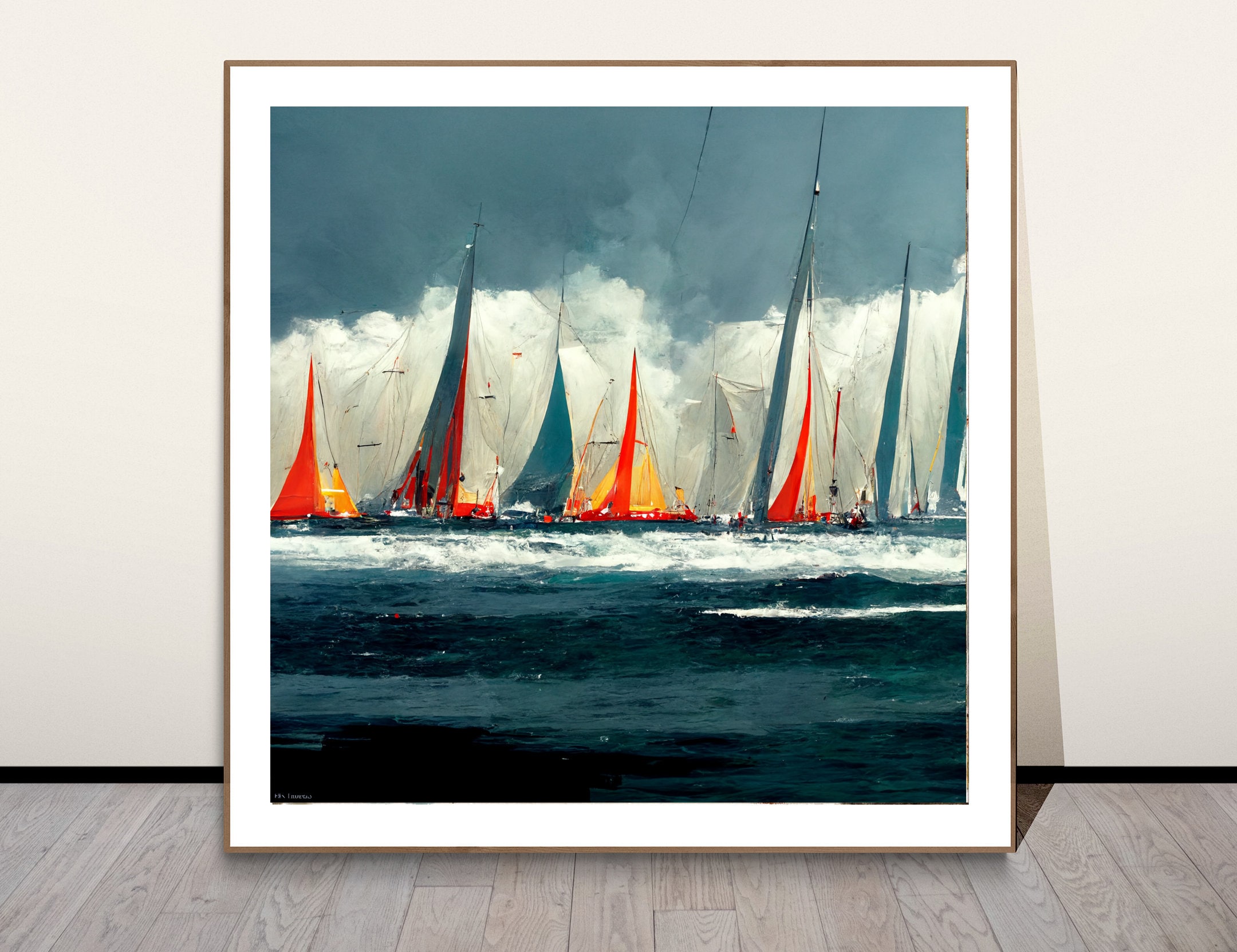 Designed by WallsNeed ai Generated. Sailing Yachts Regatta Fine Art Print - Poster Paper, Canvas Print / Gift Idea