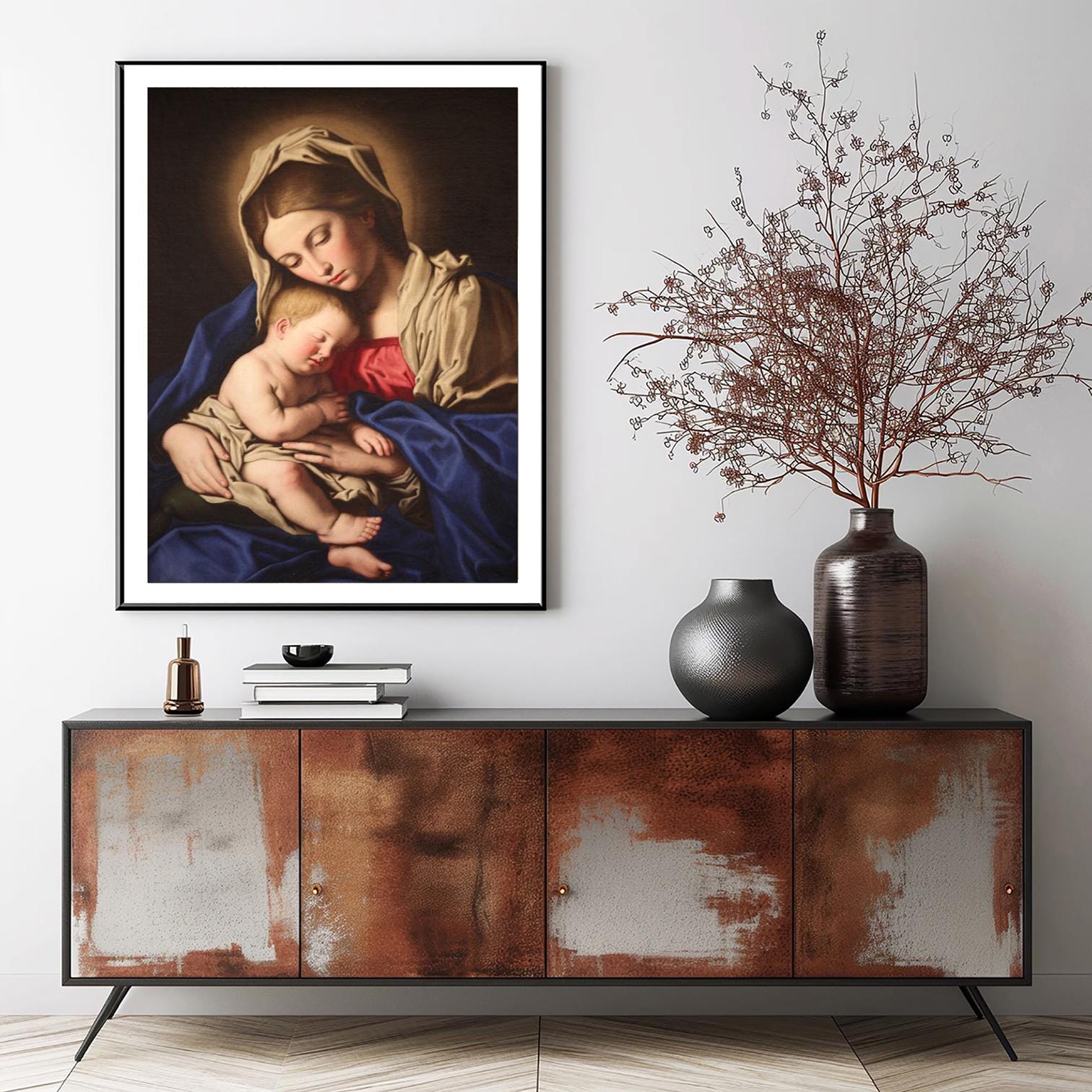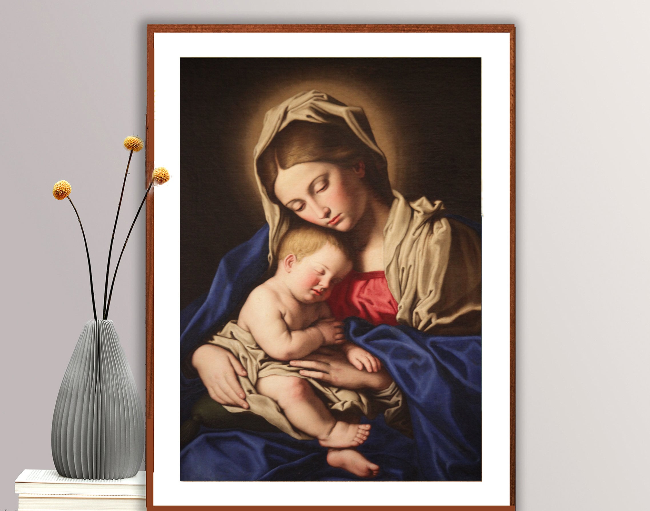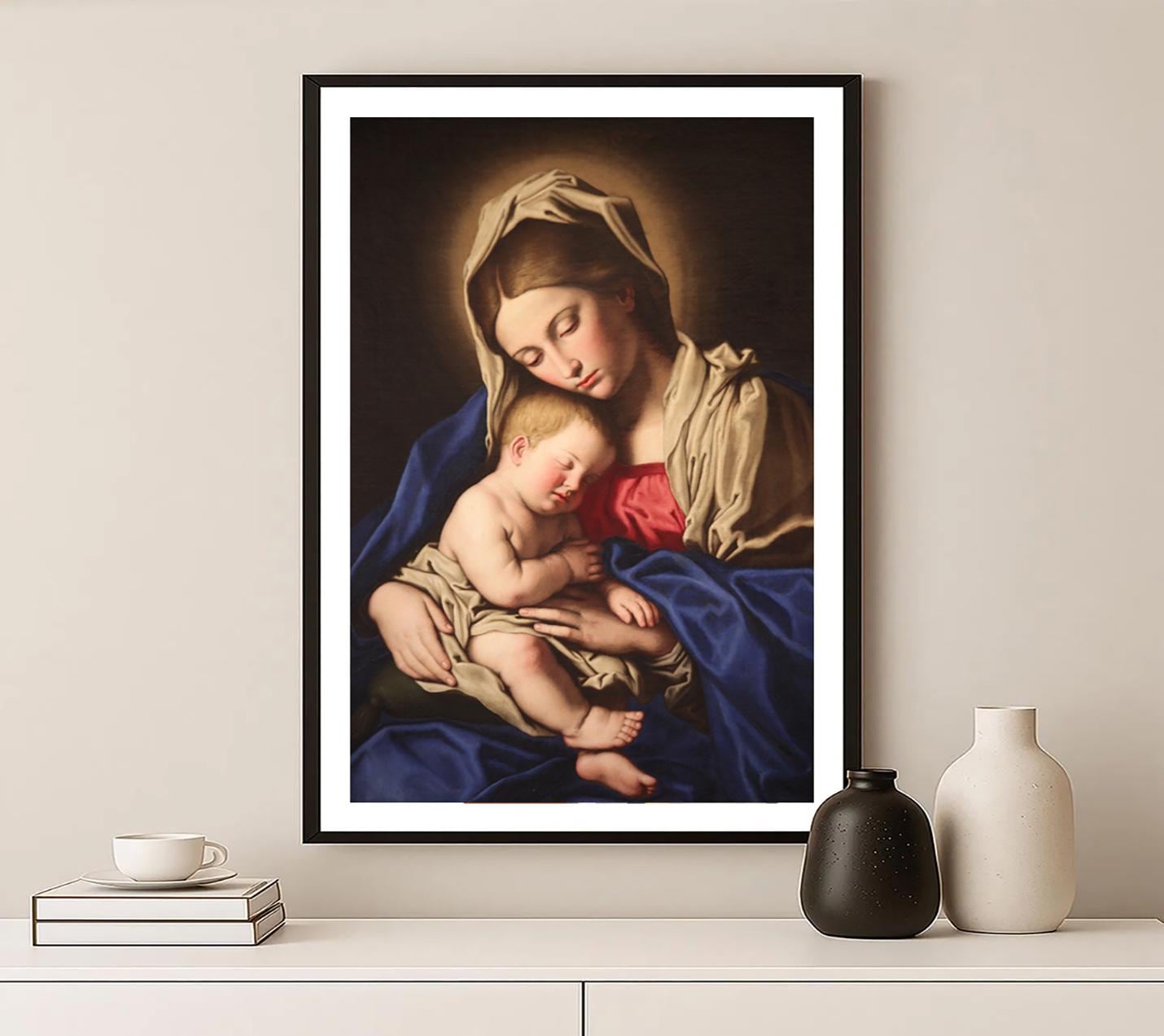 Madonna and Child by Giovan Battista Salvi detto il Sassoferrato Fine Art Print - Poster Paper, Canvas Print / Gift Idea / Wall Decor