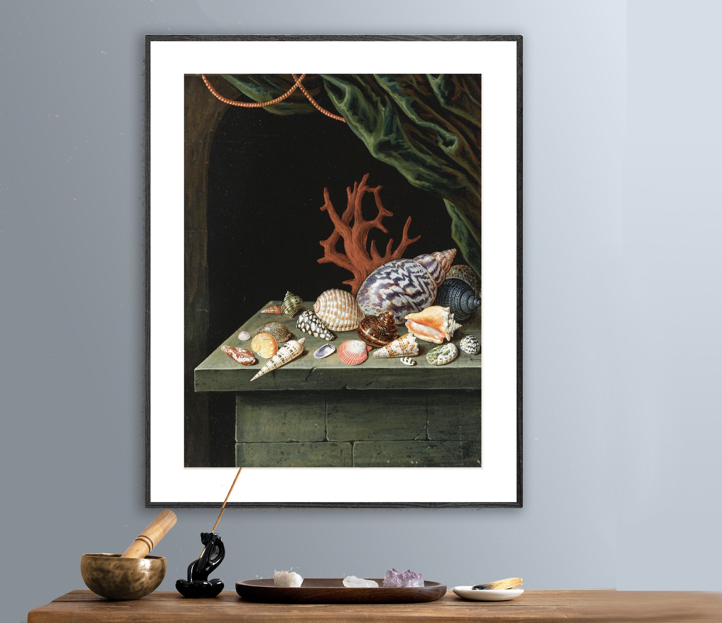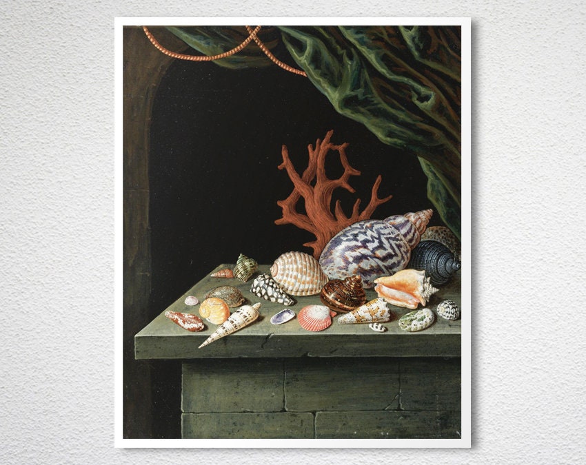Shell and Coral Resting on a Stone by Antoine Berjon Fine Art Print - Poster Paper or Canvas Print / Gift Idea