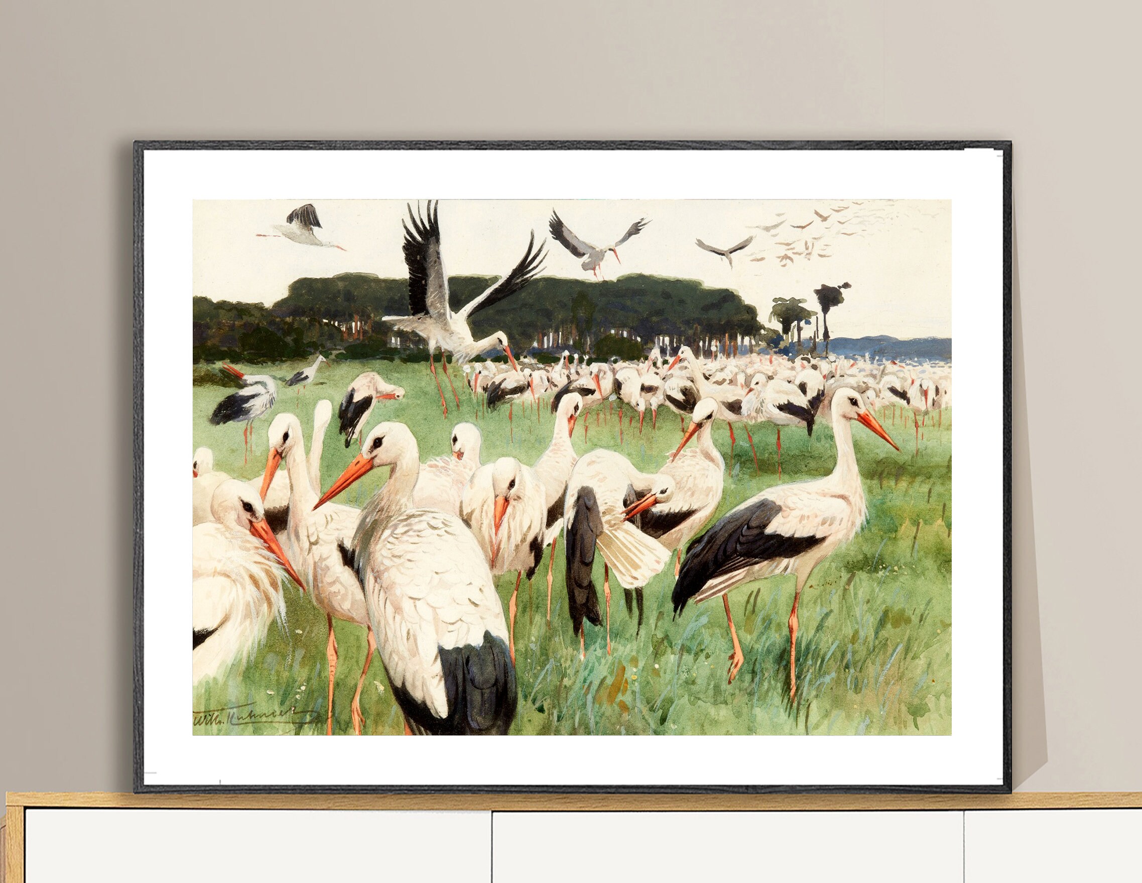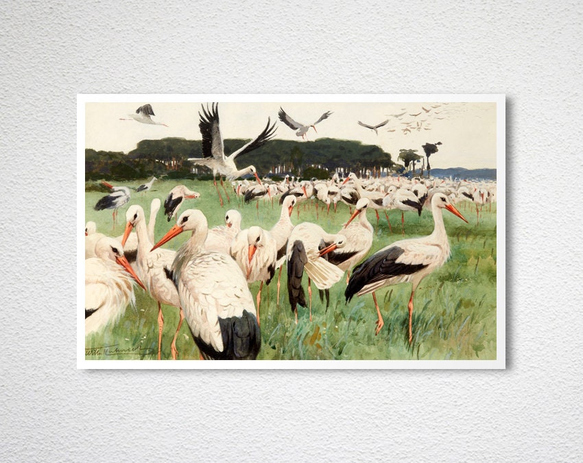 White Storks by Wilhelm Kuhnert Fine Art Print - Animals Art- Poster Paper, Canvas Print