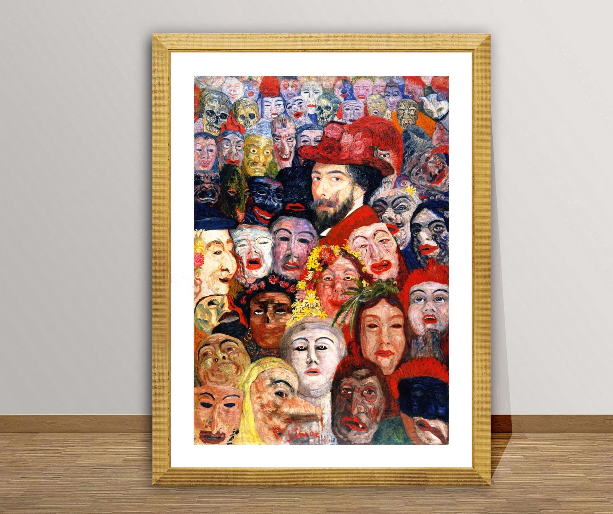 James Ensor Self Portrait with Masks Fine Art Print: Expressionist Painting