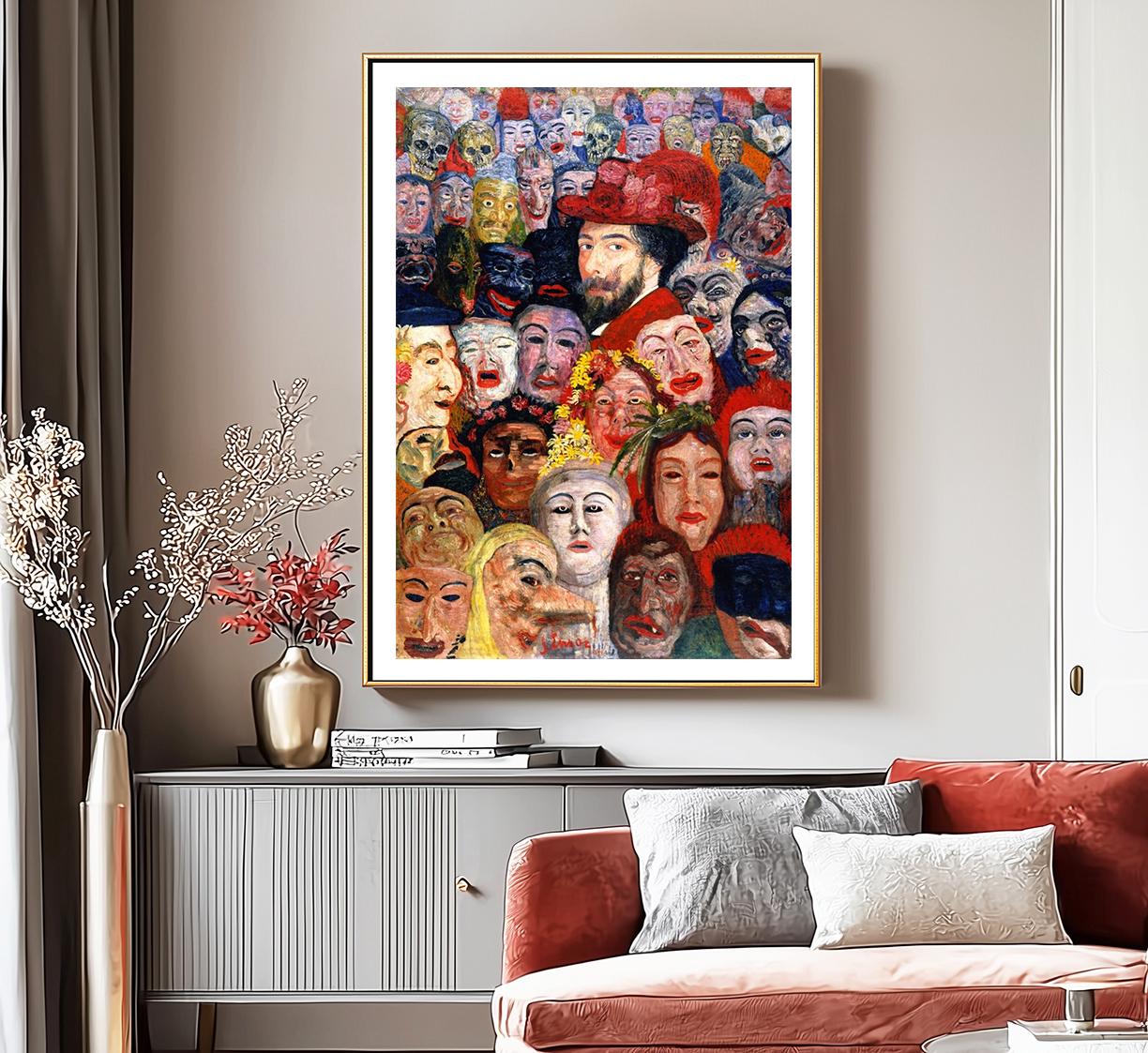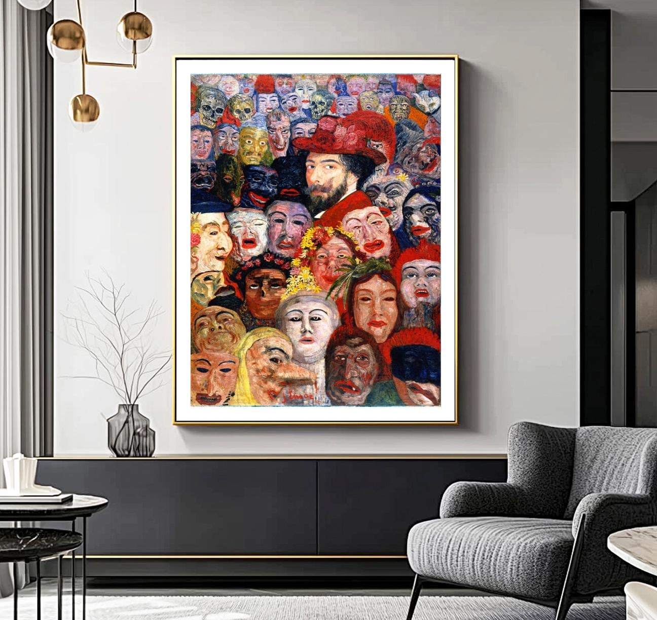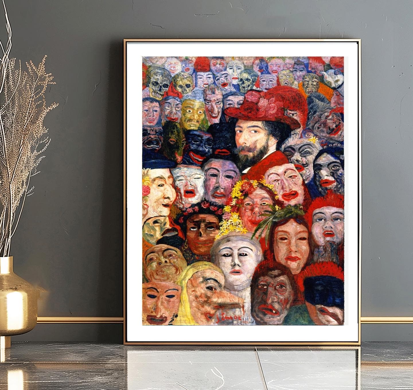 Printed on high quality paper, cotton canvas or adhesive sticker paper. A high quality reproduction of painting by James Ensor. Professional packaging for safe shipping. Natural white border will be added to the image for mounting and framing.