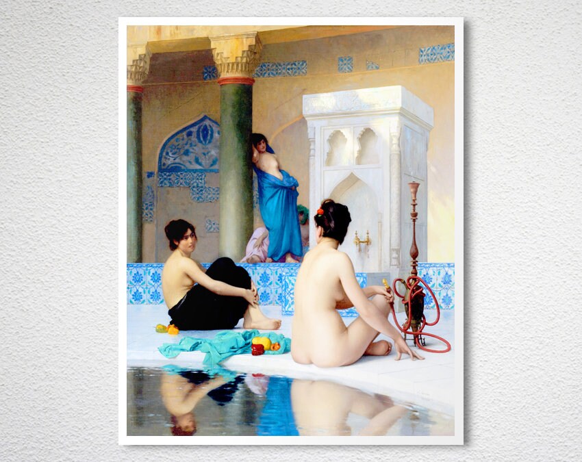 After the Bath by Jean Leon Gerome Fine Art Print - Orientalist Painting, Figurative Nude, Decorative Art