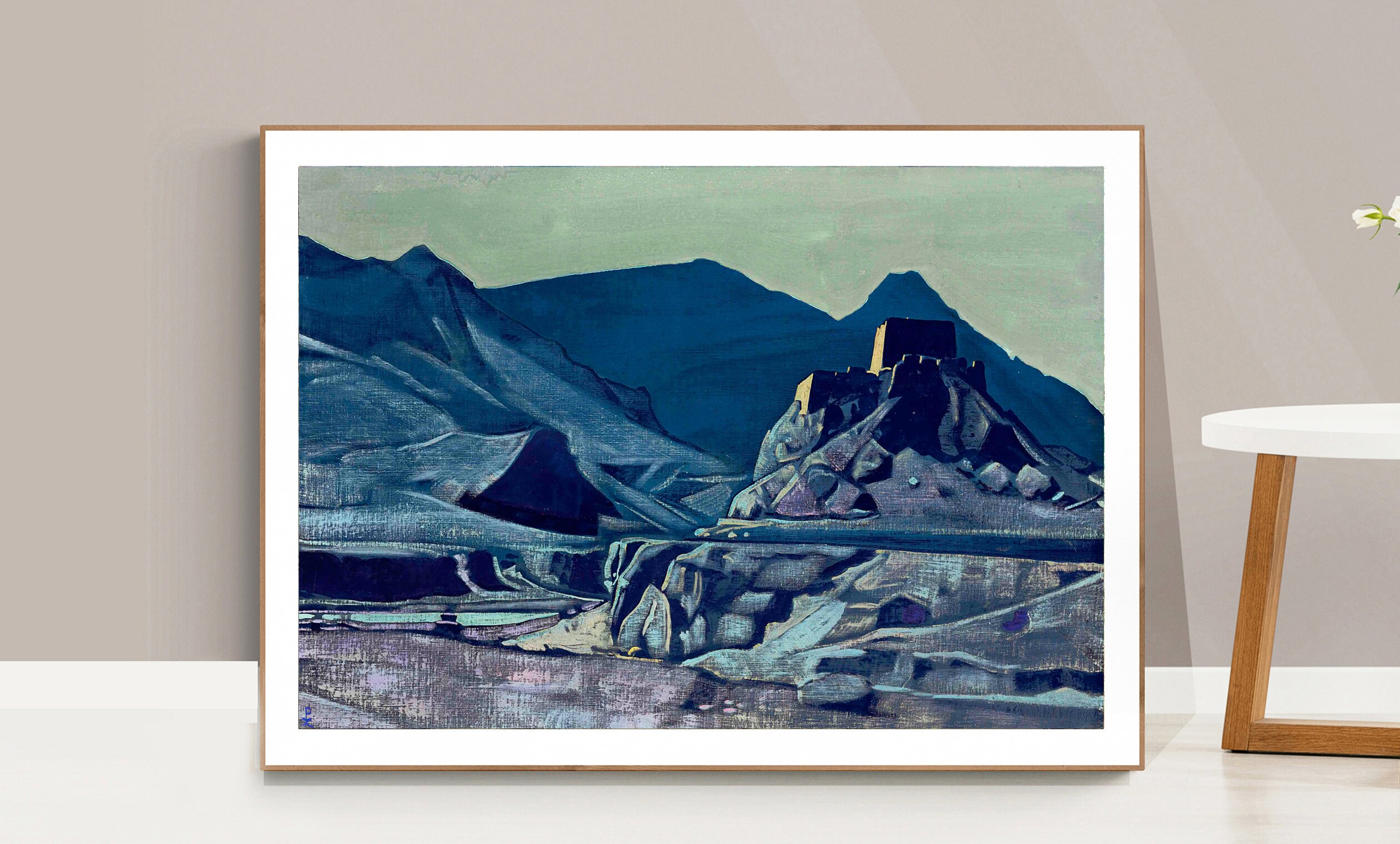 Printed on high quality paper, cotton canvas or adhesive sticker paper. A high quality reproduction of painting by Nicholas Roerich. Professional packaging for safe shipping. Natural white border will be added to the image for mounting and framing. Frame is not included.