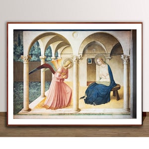 The subdued, almost monochromatic color palette creates a hushed, meditative atmosphere, emphasizing spiritual purity over earthly passion.