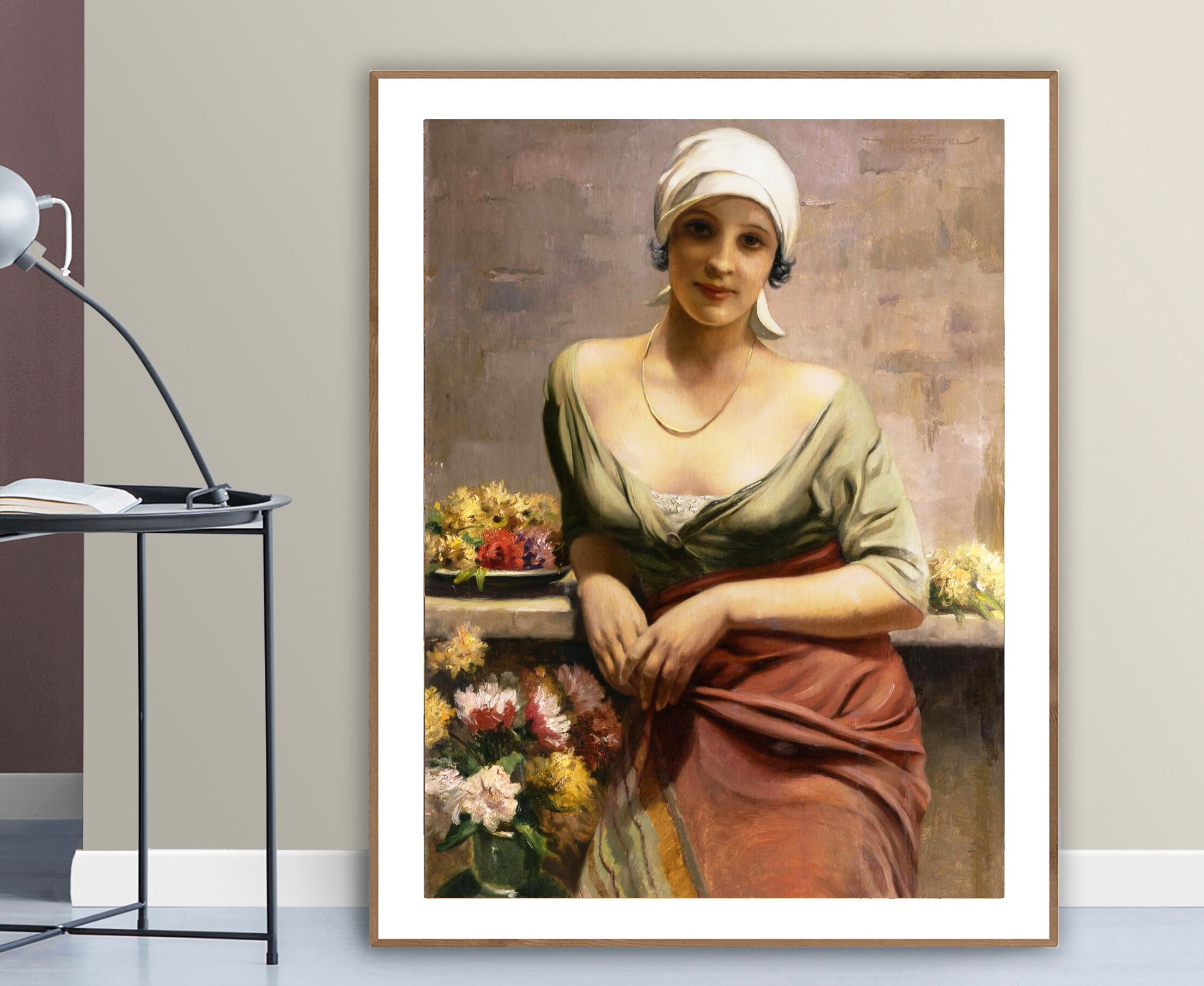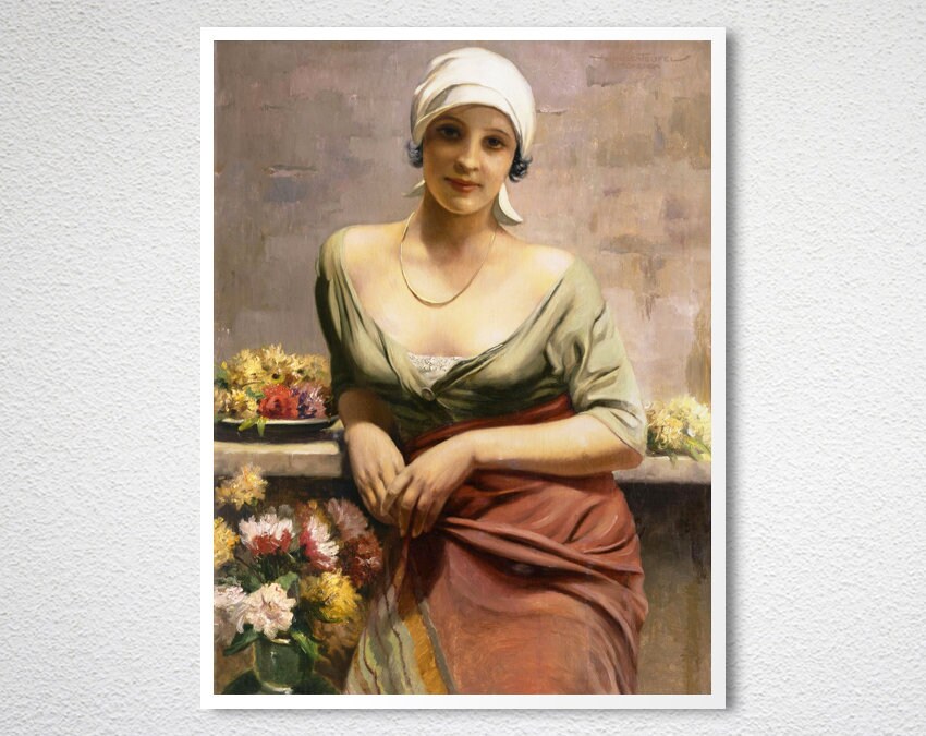 Girl with Flowers by Hans Hassenteufel Fine Art Print - Poster Paper or Canvas Print / Gift Idea / Wall Decor