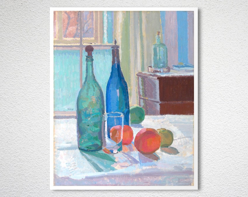 Blue and Green Bottles and Oranges by Spencer Gore Fine Art Print - Poster Paper or Canvas Print / Gift Idea