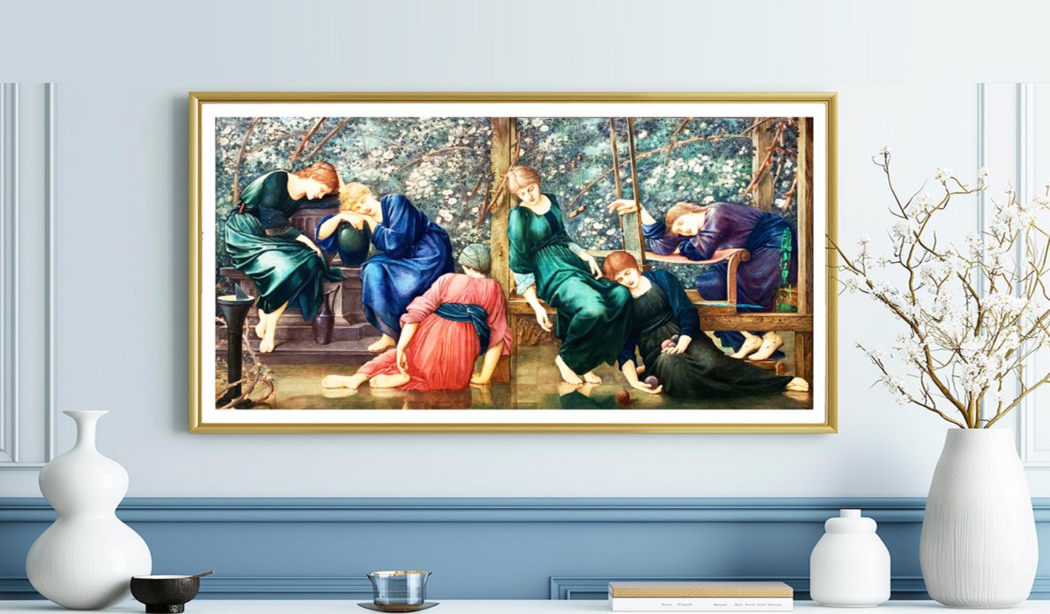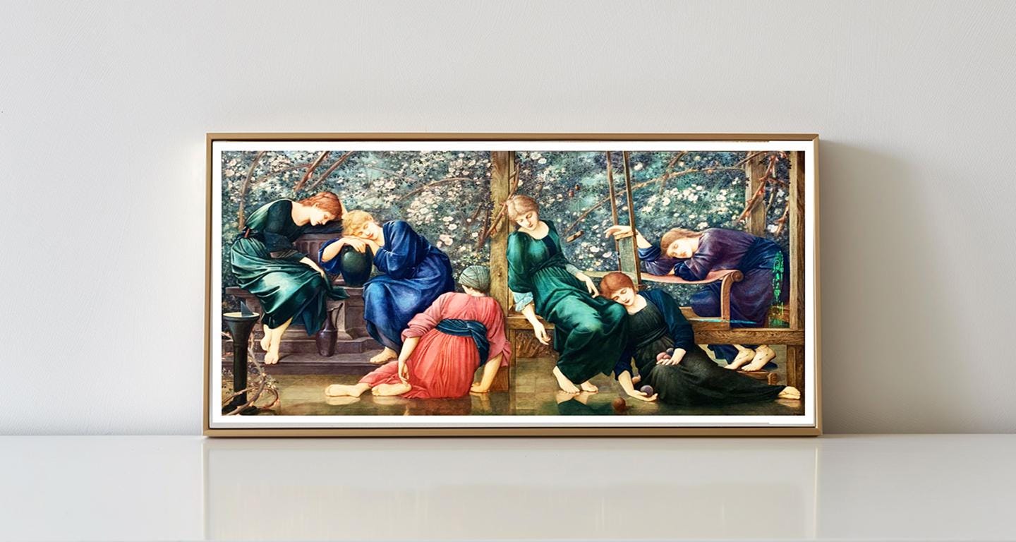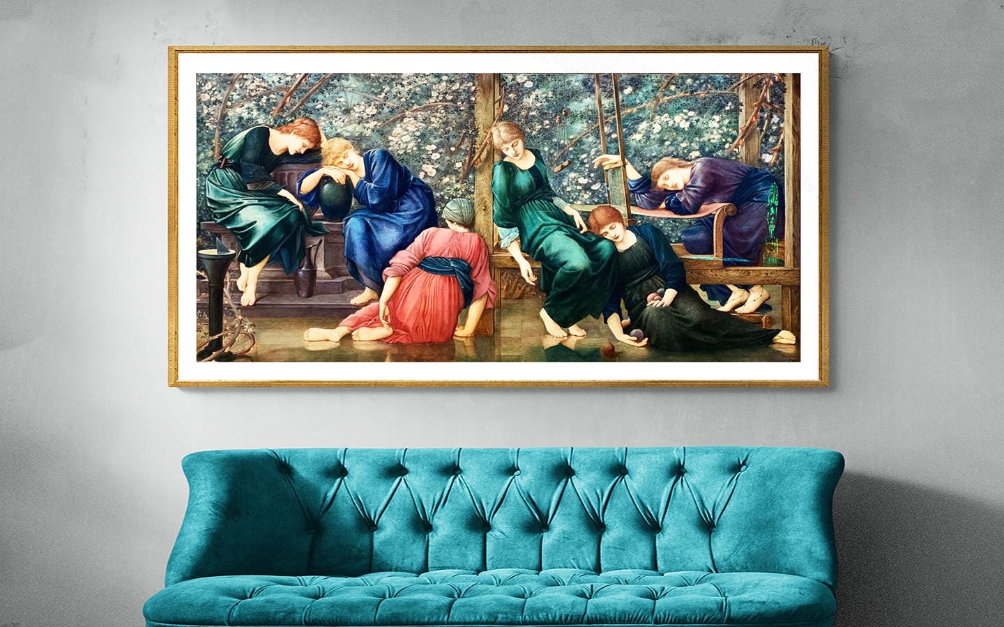 Printed on high quality paper, cotton canvas or adhesive sticker paper. A high quality reproduction of painting by Edward Burne Jones. Professional packaging for safe shipping. Natural white border will be added to the image for mounting and framing.