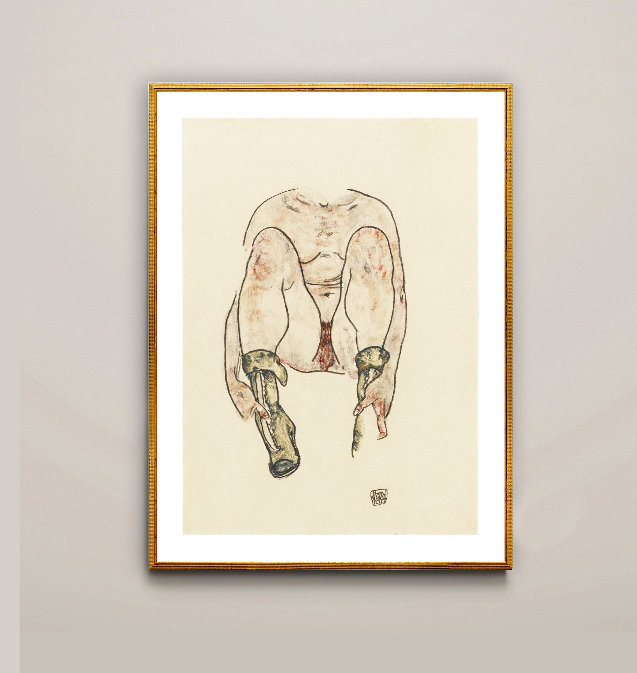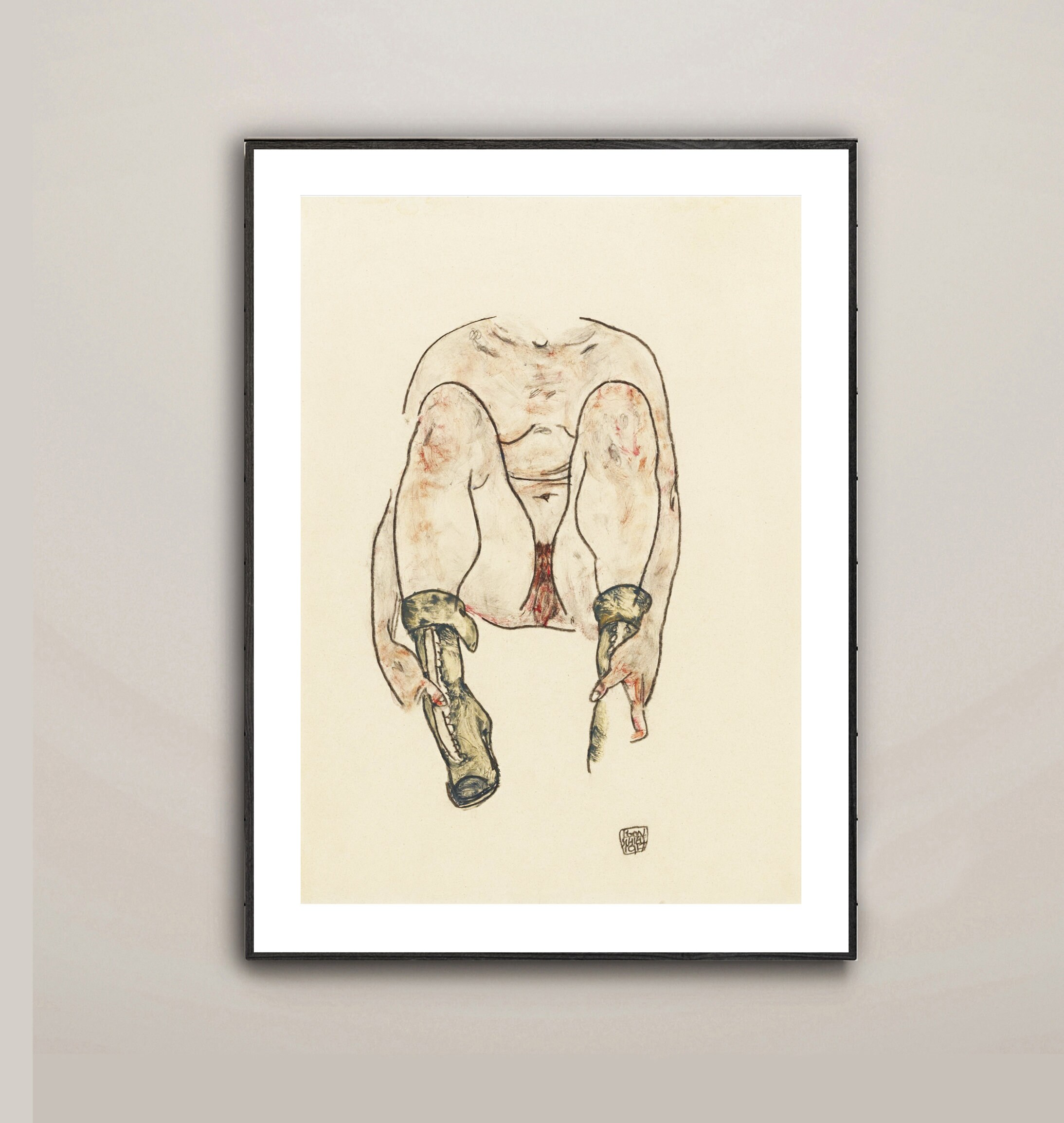 Seated Female Nude with Green Boots by Egon Schiele Fine Art Print - Nude Art Print, Expressionist Poster, Modern Wall Décor