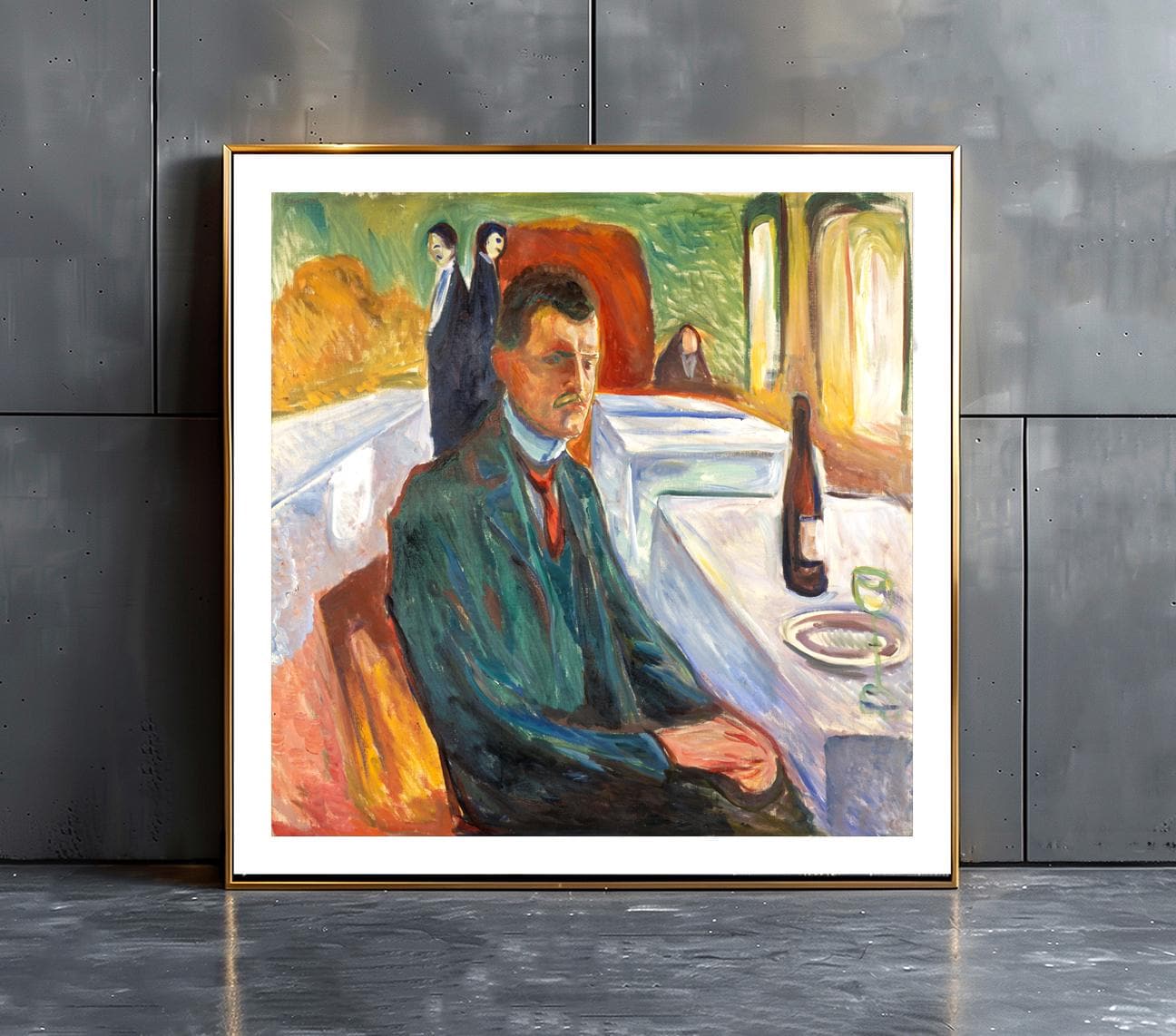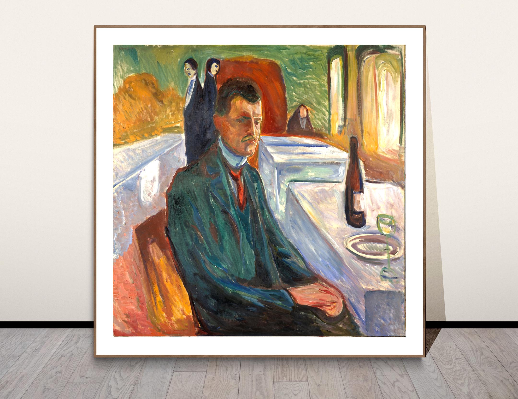Edvard Munch Print: Self Portrait with Wine, Symbolist Art