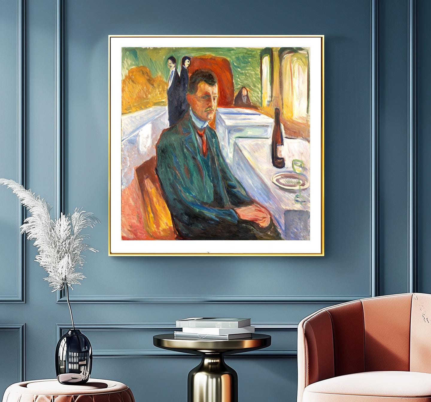 Self Portrait with a Bottle of Wine by Edvard Munch Fine Art Print - Poster Paper or Canvas Print / Gift Idea
