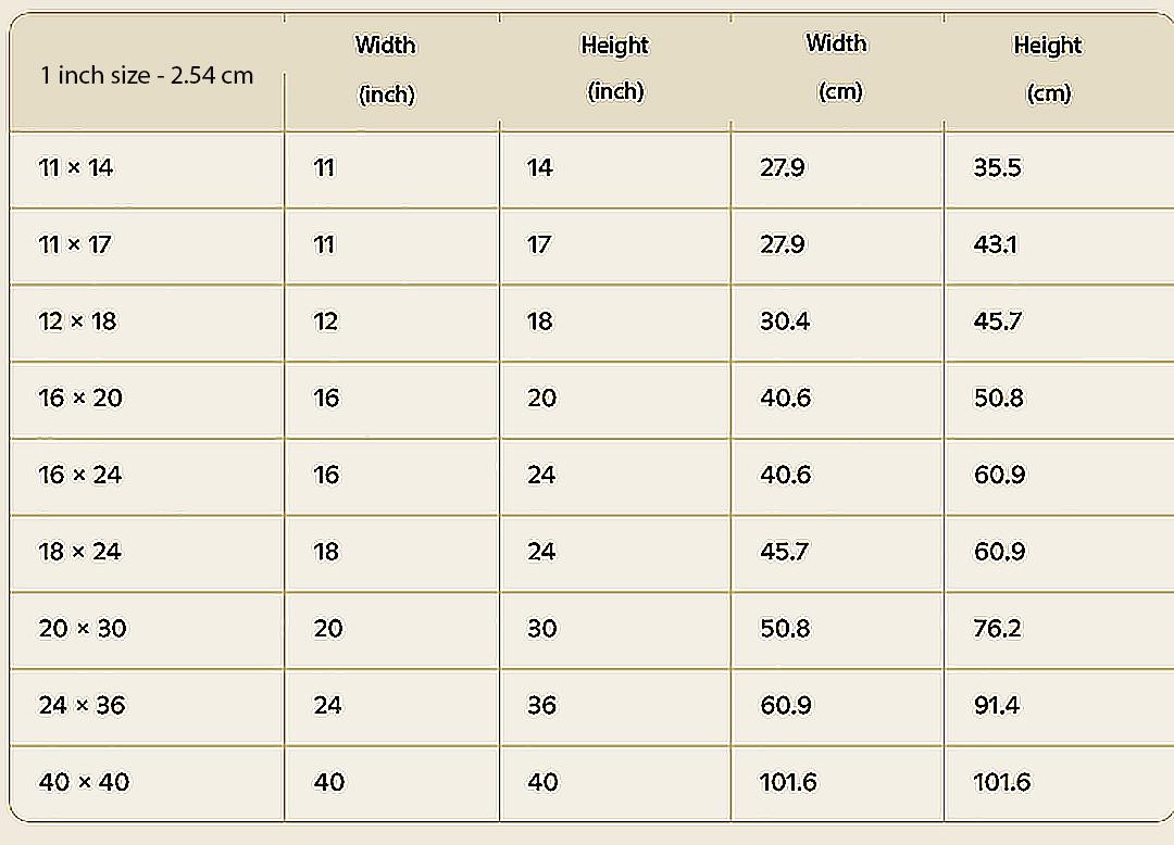 We can produce this product in many sizes other than the sizes listed. Sizes listed are in inch format. For metric sizes and other formats, please order according to the sizes below and send us the size you want in a private message or order note.