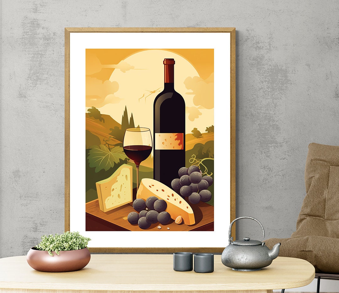Wine Night Art Print: Food & Drink Poster, Bar Decor