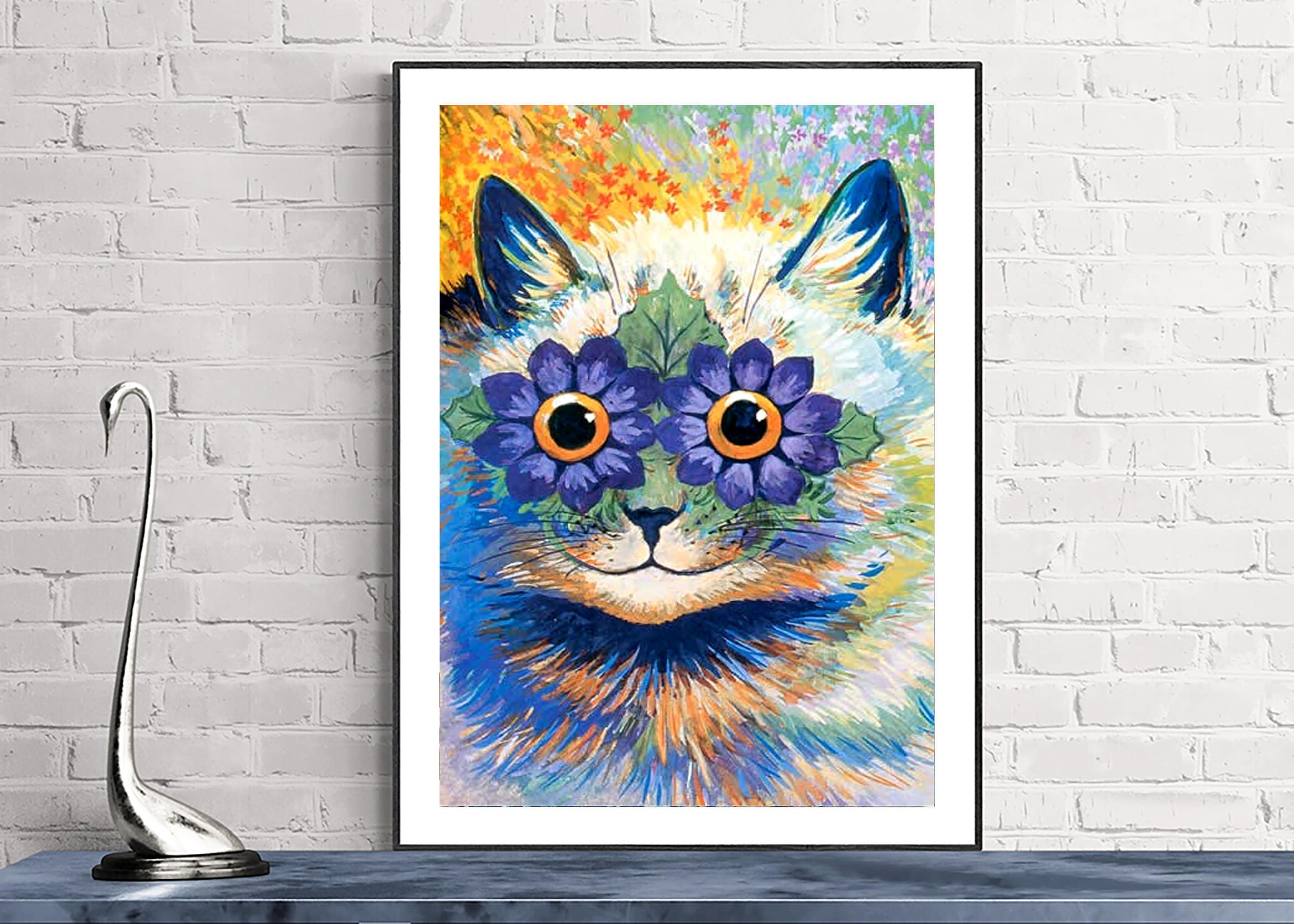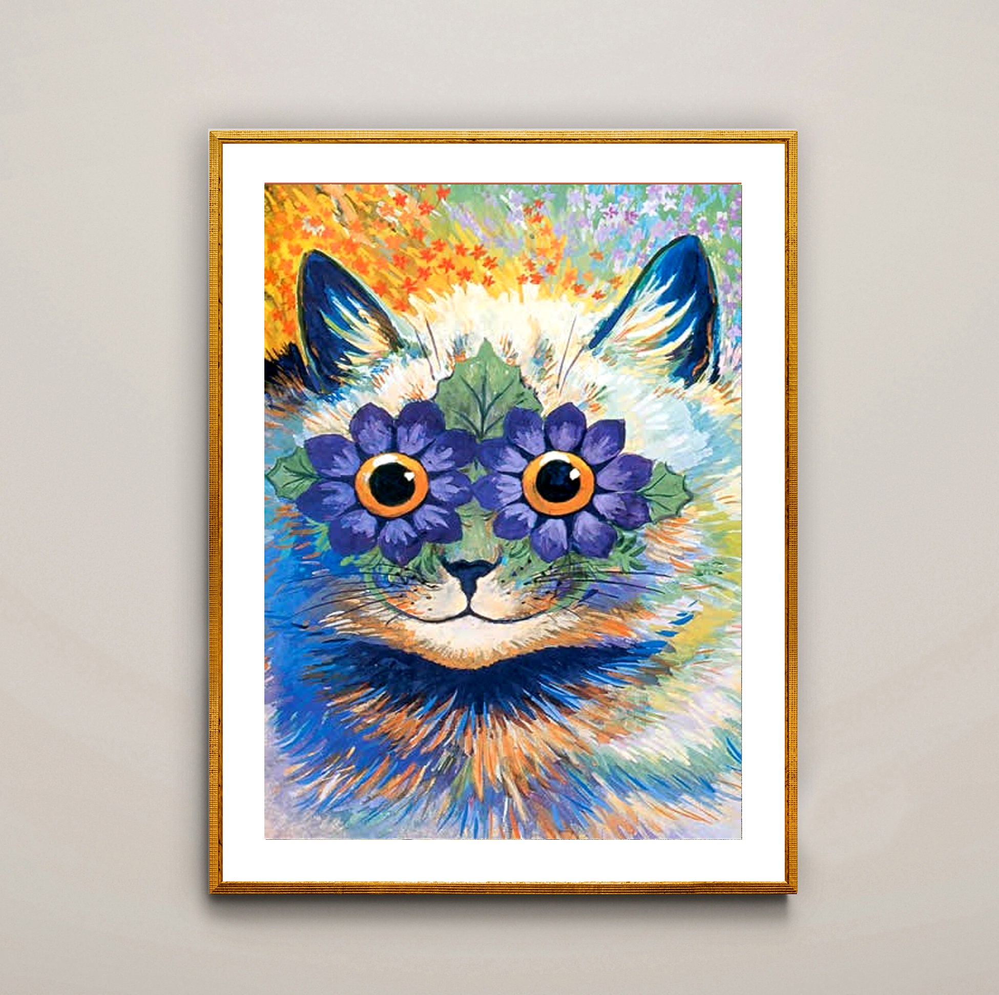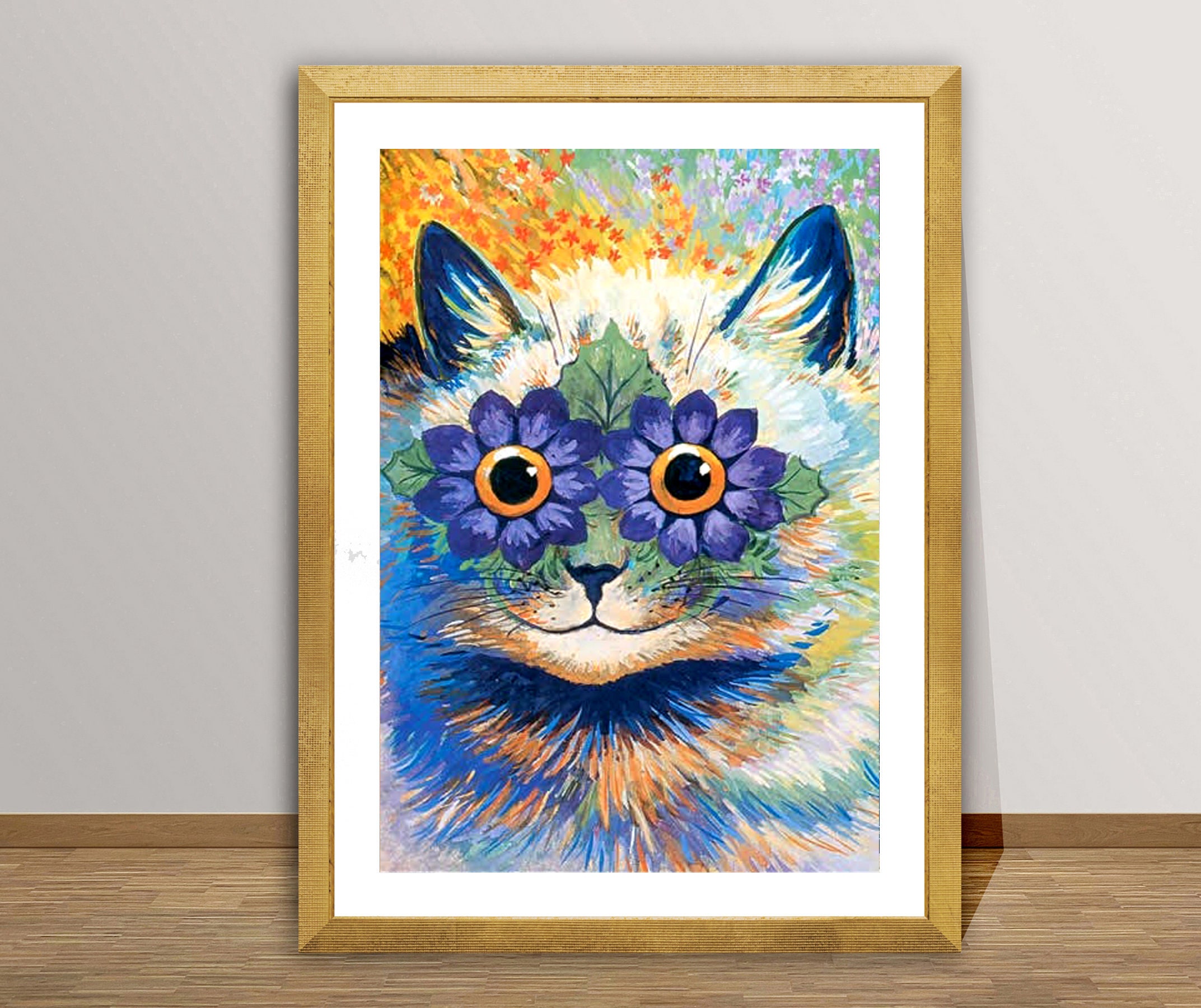 Louis Wain Cat with Flower Eyes Art Print: Retro Wall Decor (Digital Print)