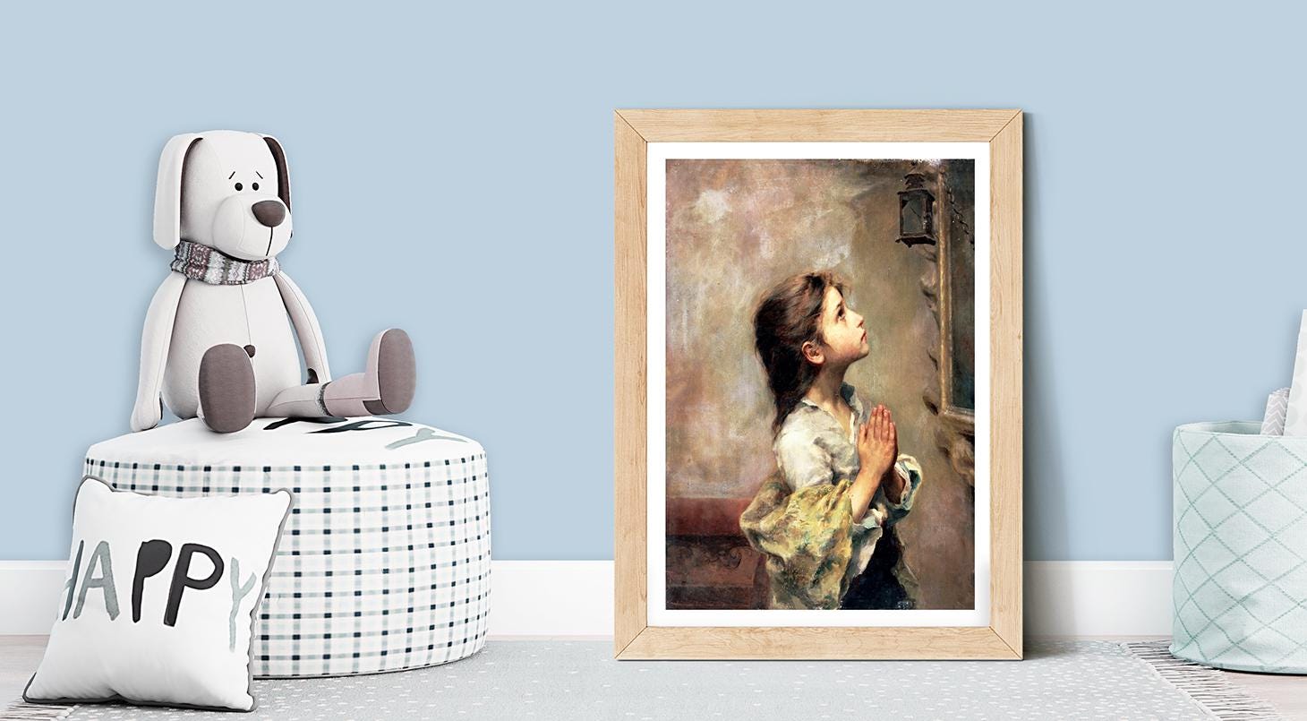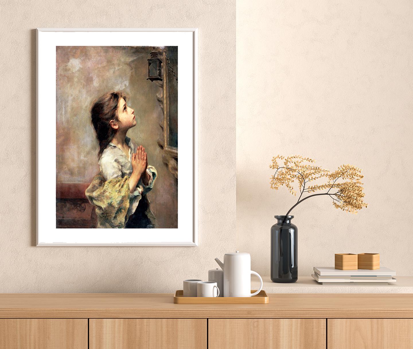 Praying Girl by Roberto Ferruzzi Fine Art Print - Poster Paper, Canvas Print / Gift Idea / Wall Decor