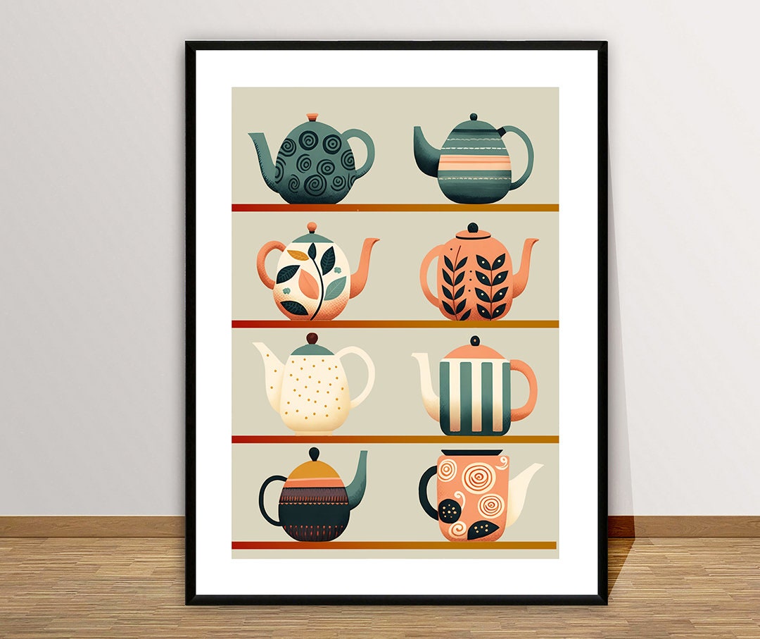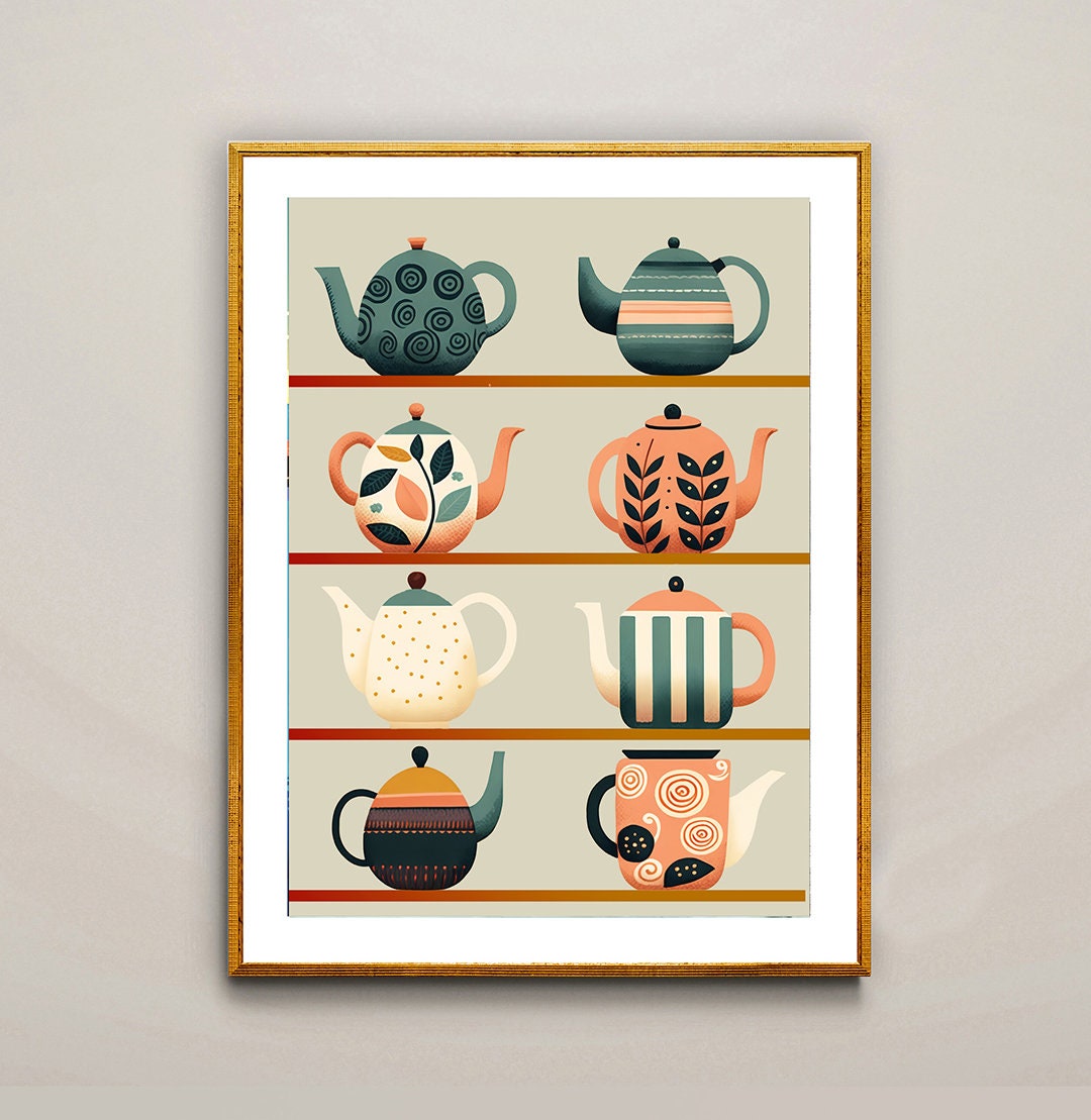 Teapots Collection Art Print: Art Deco Kitchen Wall Decor