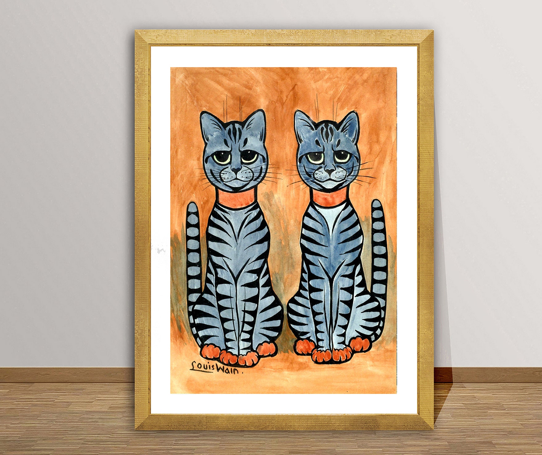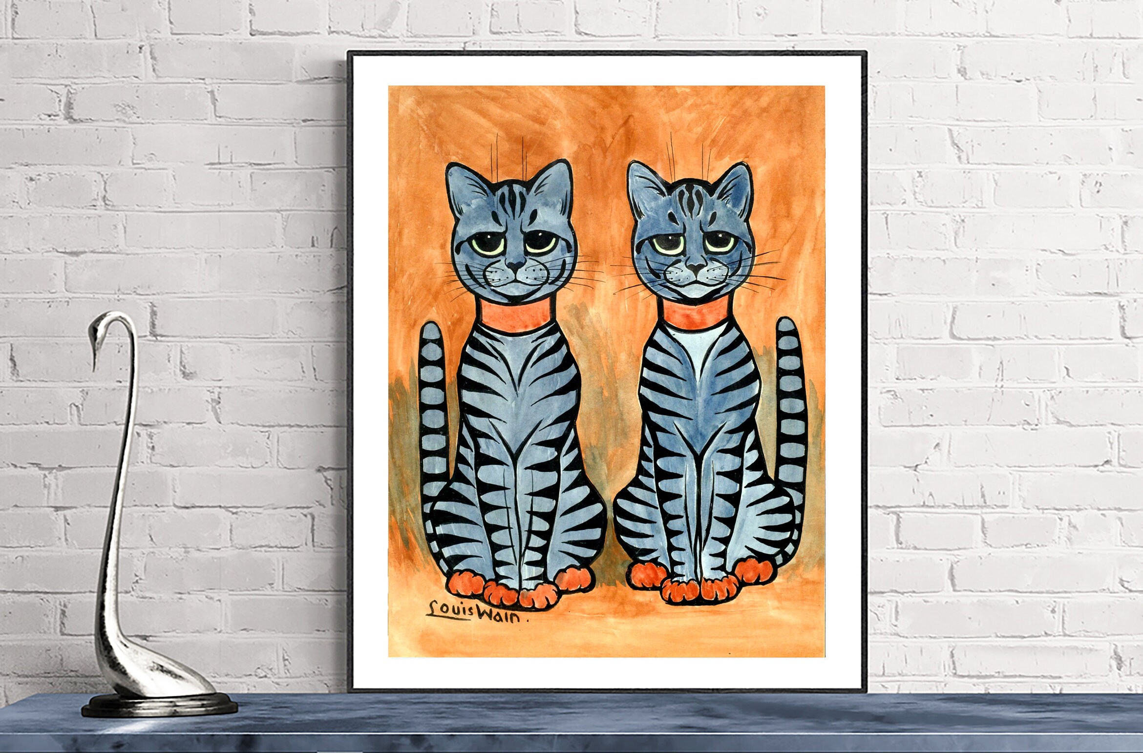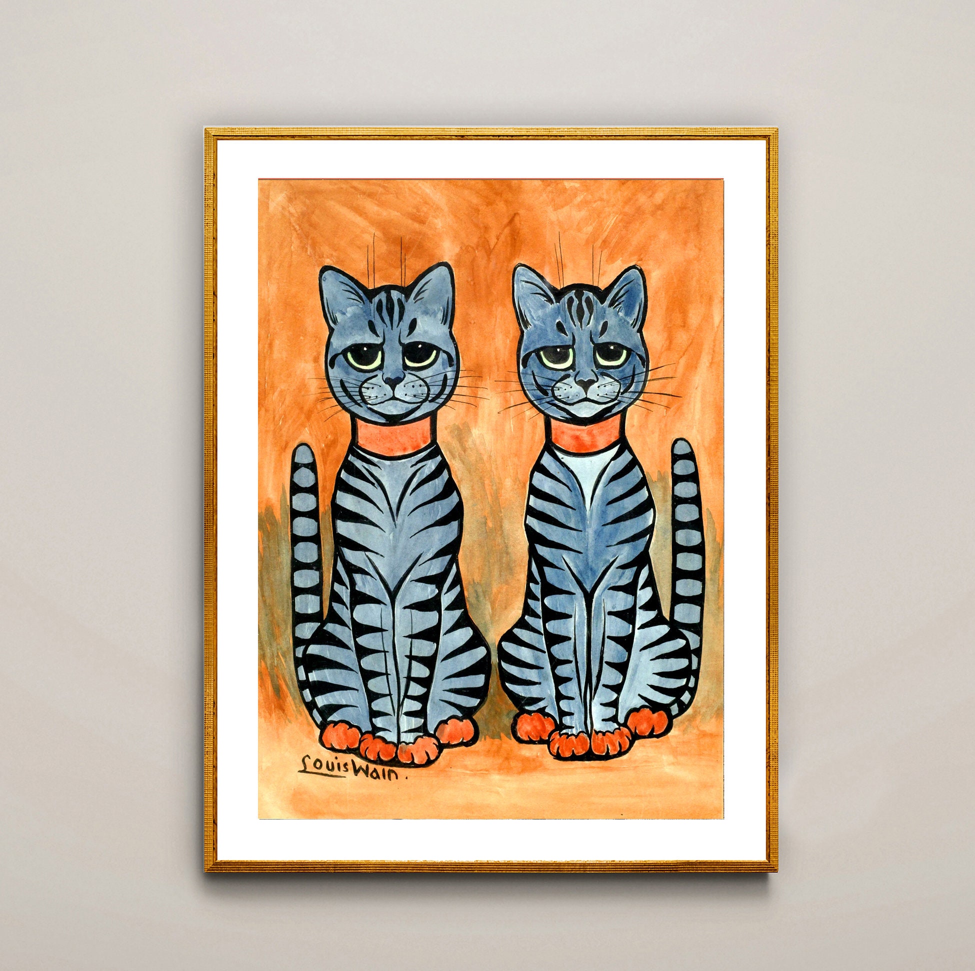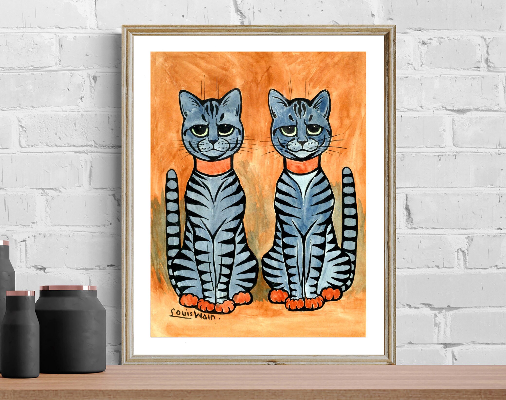 Louis Wain Twins Cat Art Print: Retro Feline Wall Decor (Digital Print)