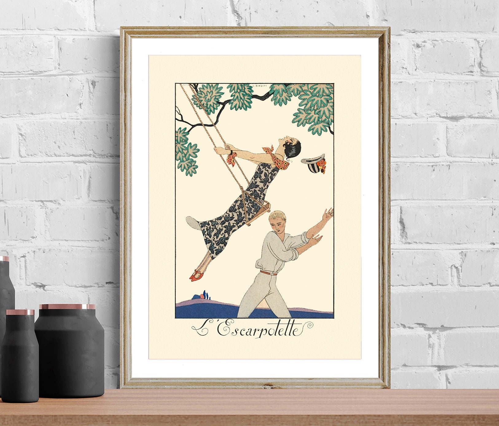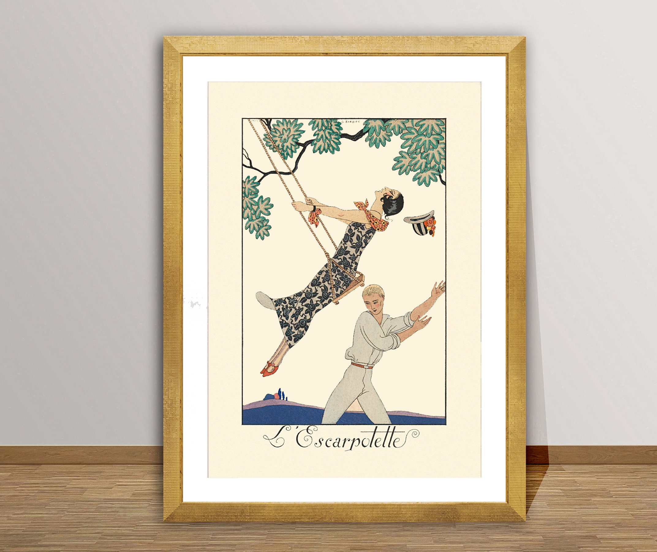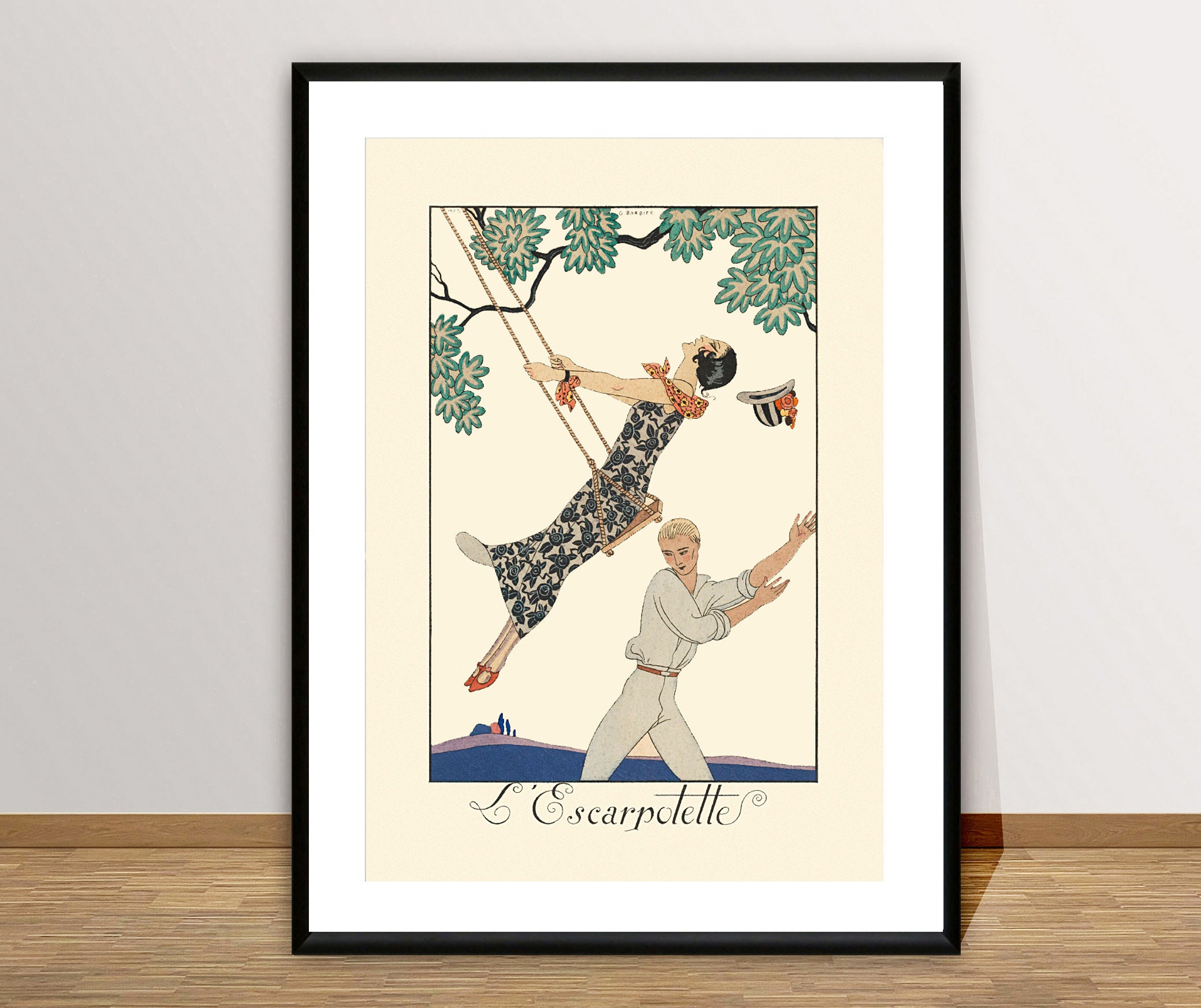 The Swing (L'Escarpolettes) by George Barbier Vintage Poster, Fashion Wall Art, Art Nouveau Poster