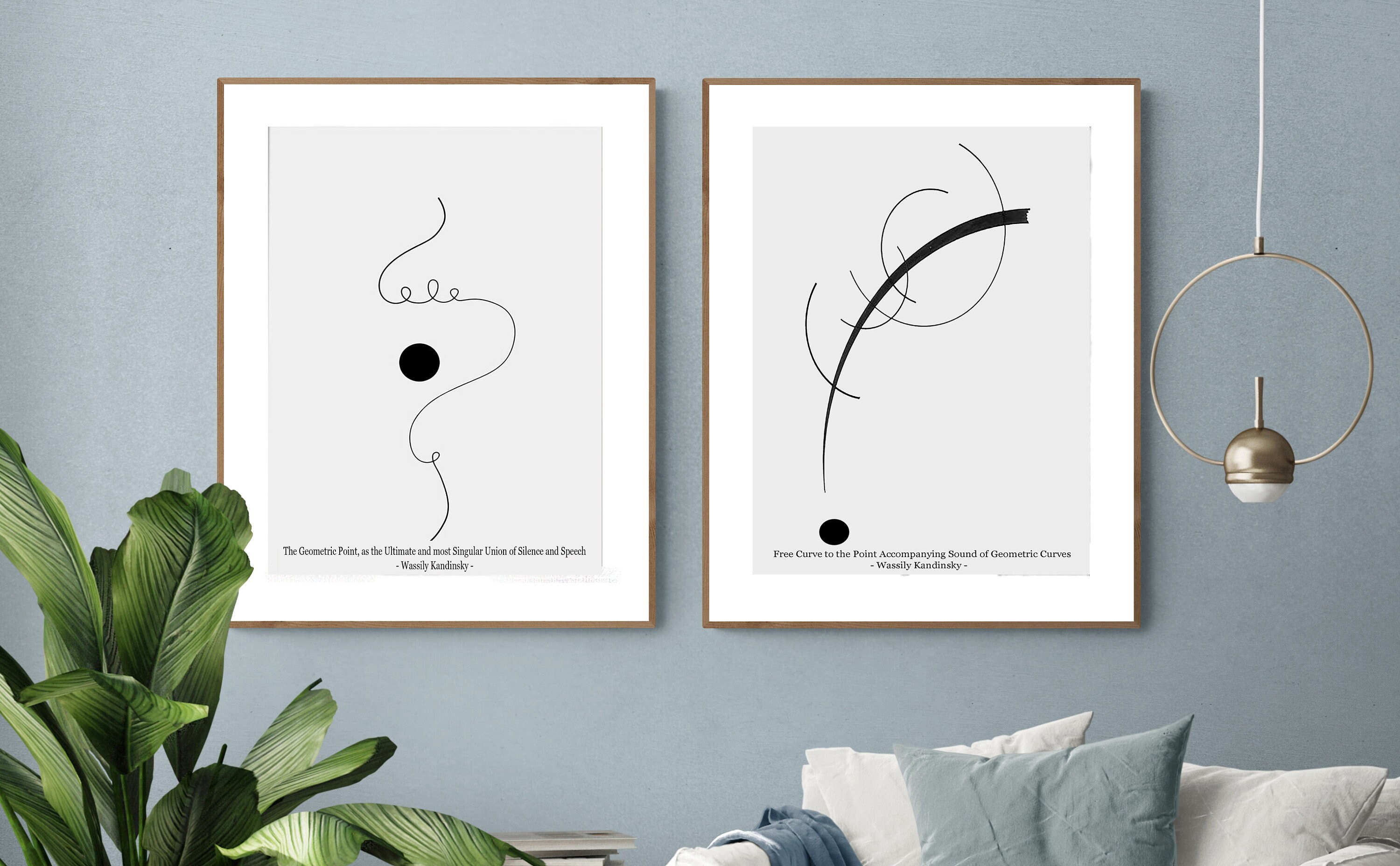 Kandinsky Abstract Art Prints: Geometric Point & Free Curve, Set of 2