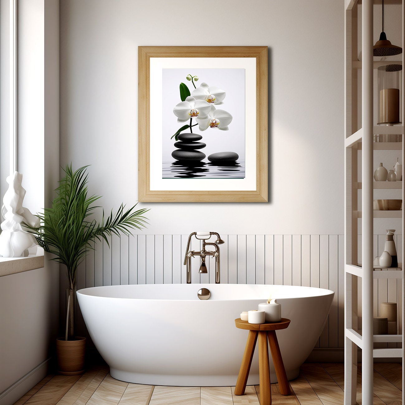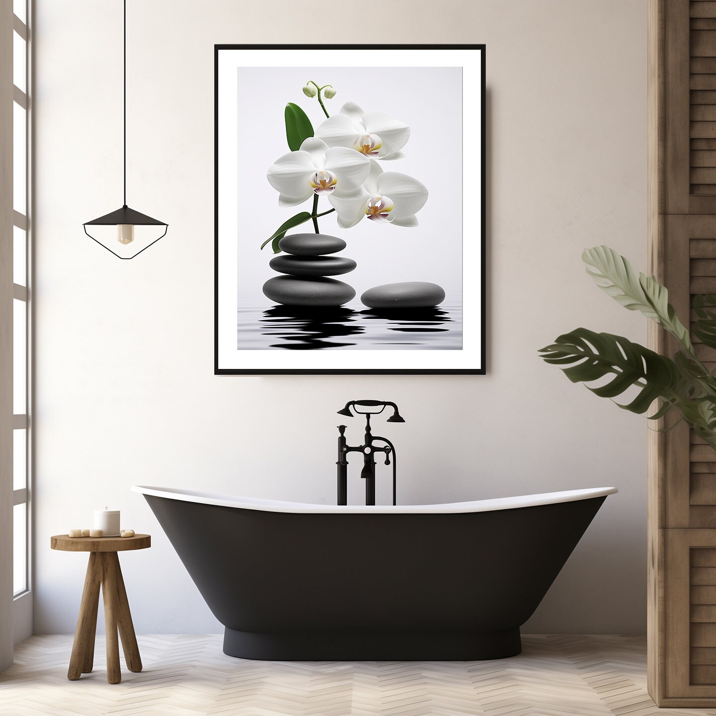 White Orchid Print: Zen Stone Fine Art, Modern Bathroom Decor