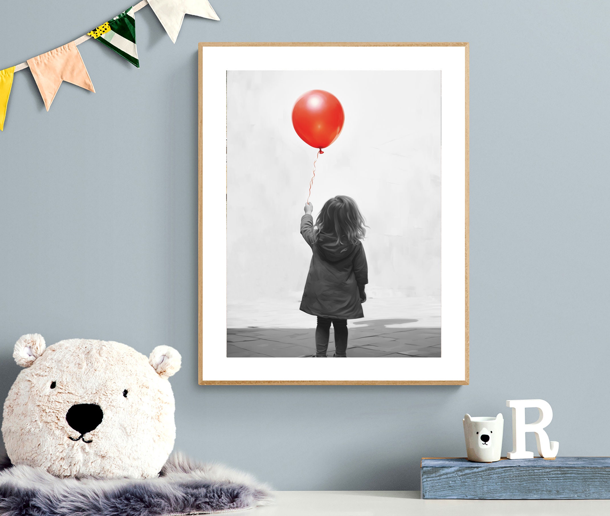 Girl with Red Balloon Fine Art Print - Kids Room Decor