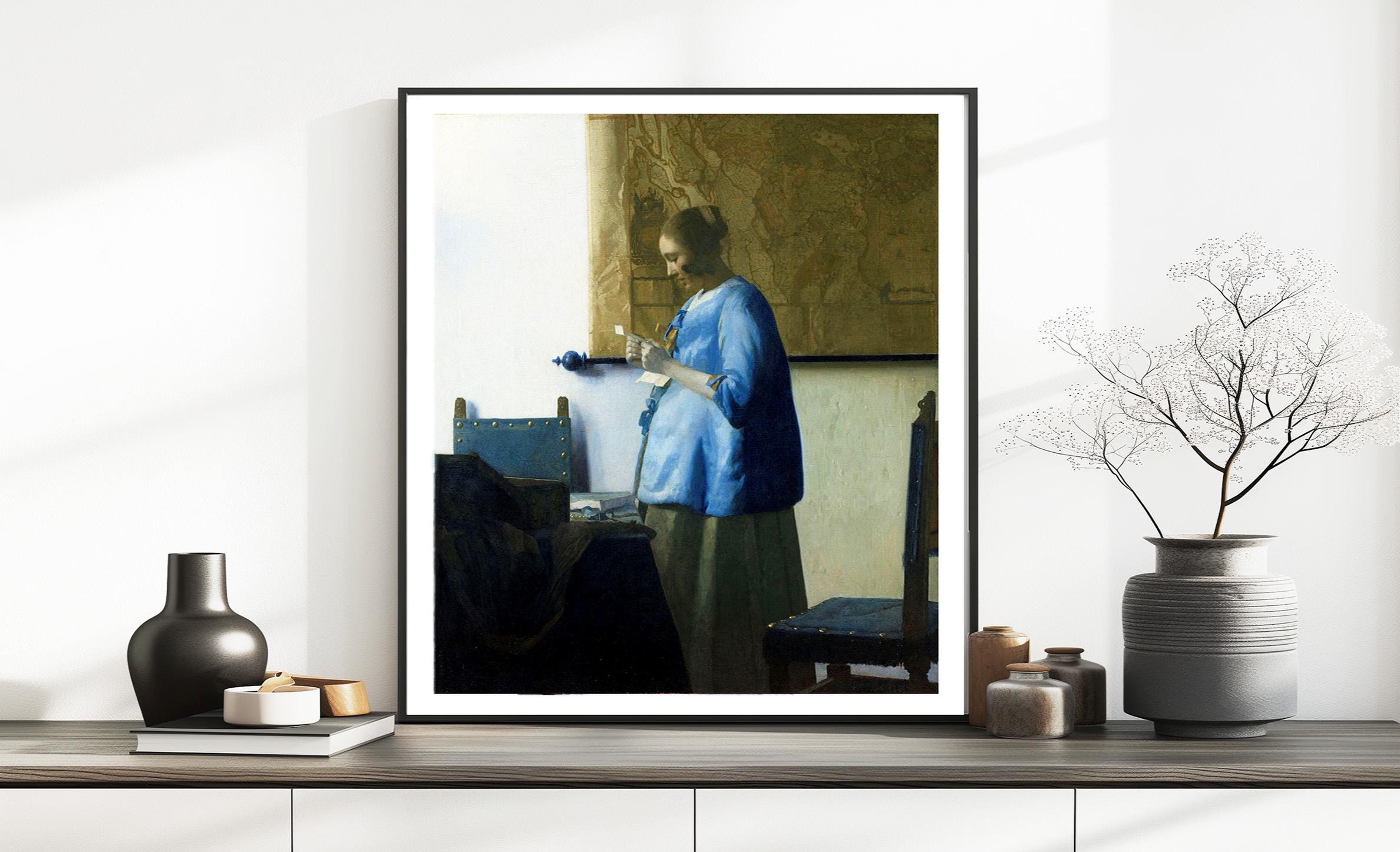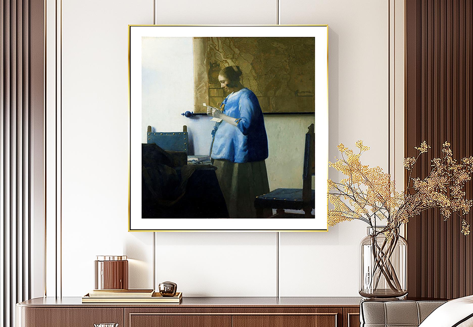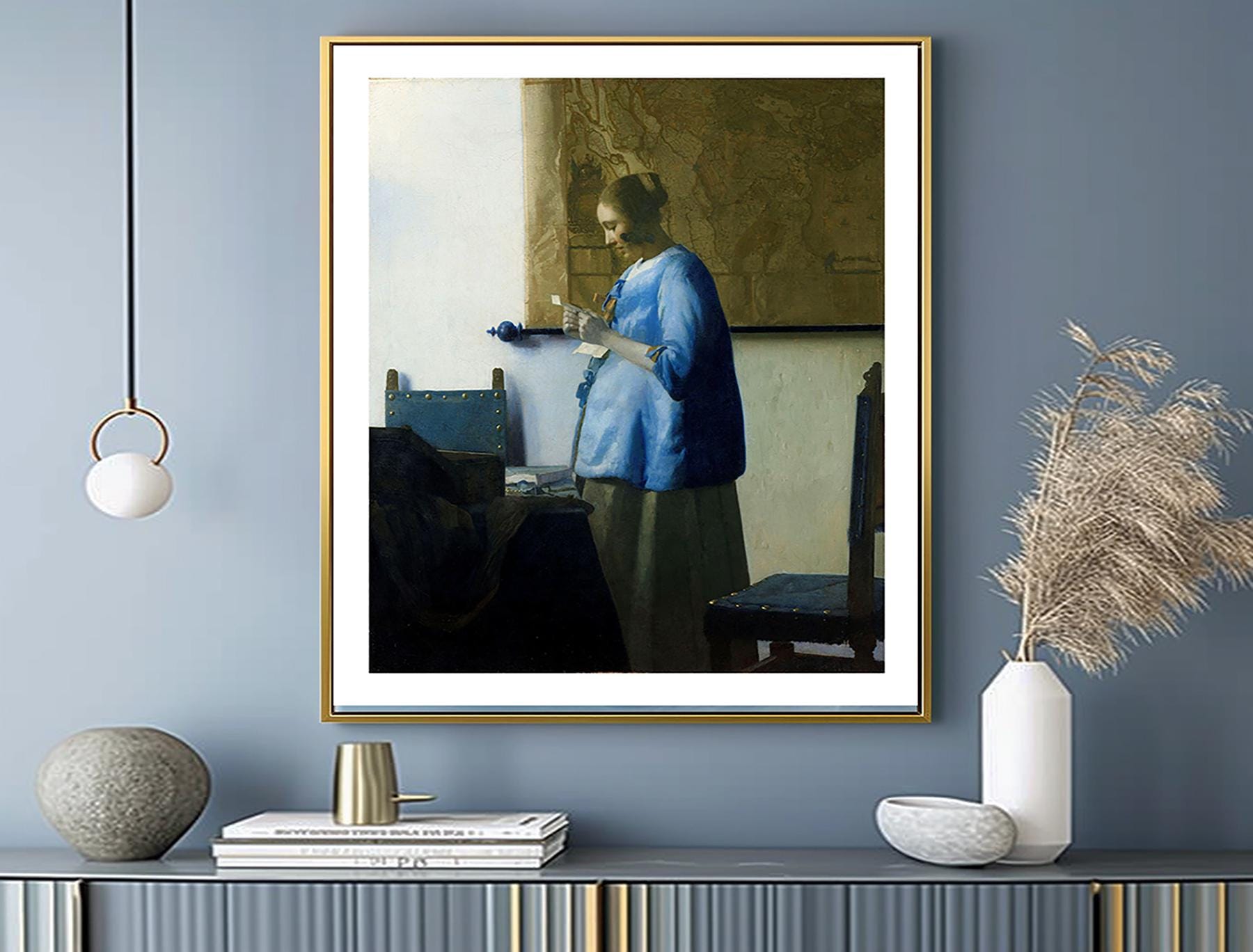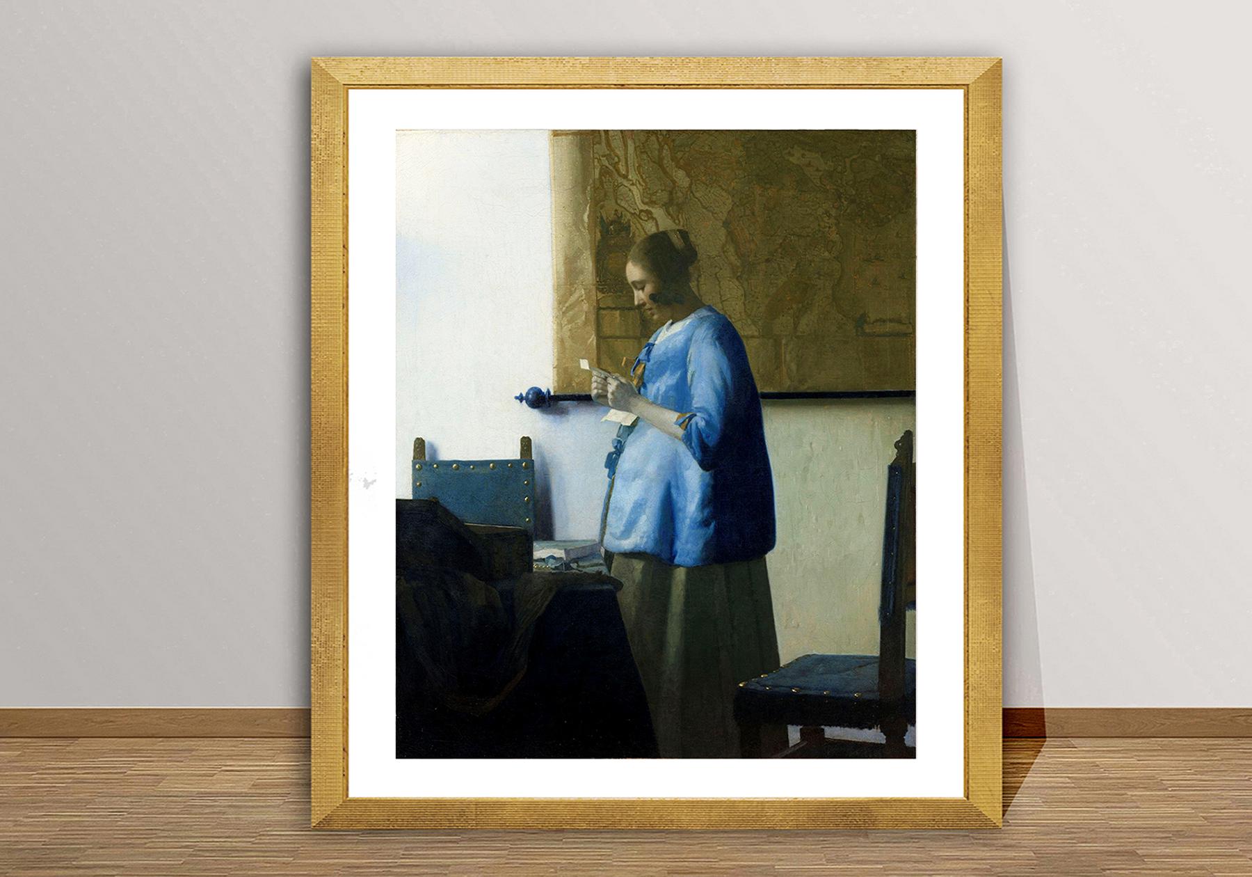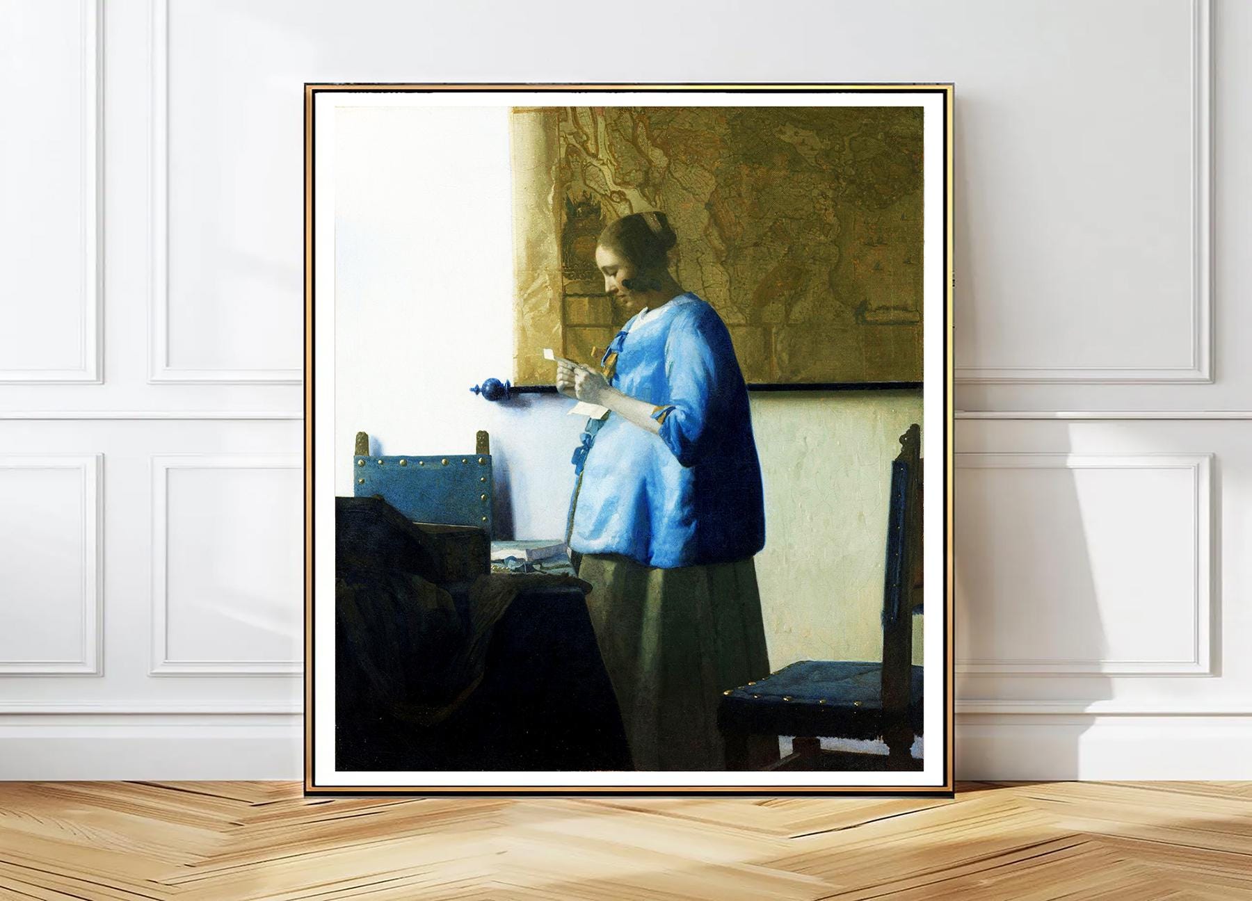 Woman in Blue Reading a Letter by Johannes Vermeer Fine Art Print - Poster Paper, Canvas Print