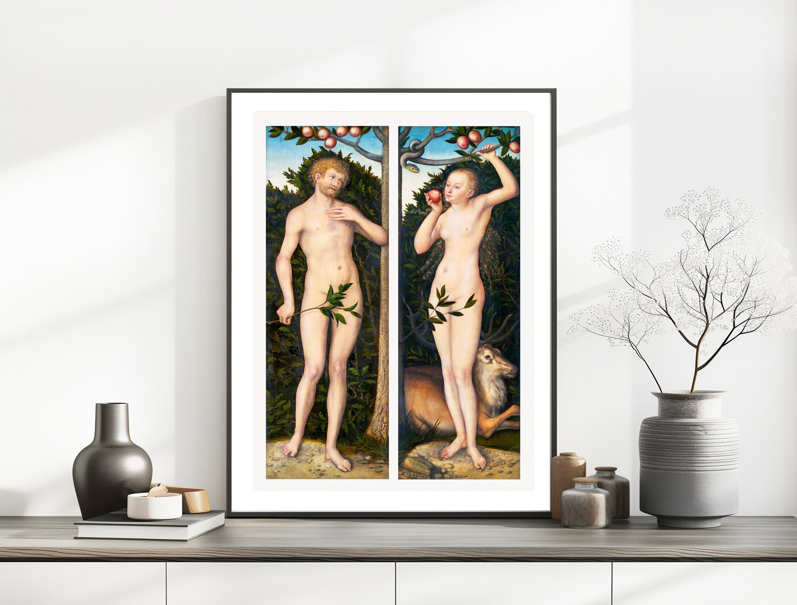 Adam and Eve by Lucas Cranach Fine Art Print - Poster Paper or Canvas Print / Gift Idea / Wall Decor