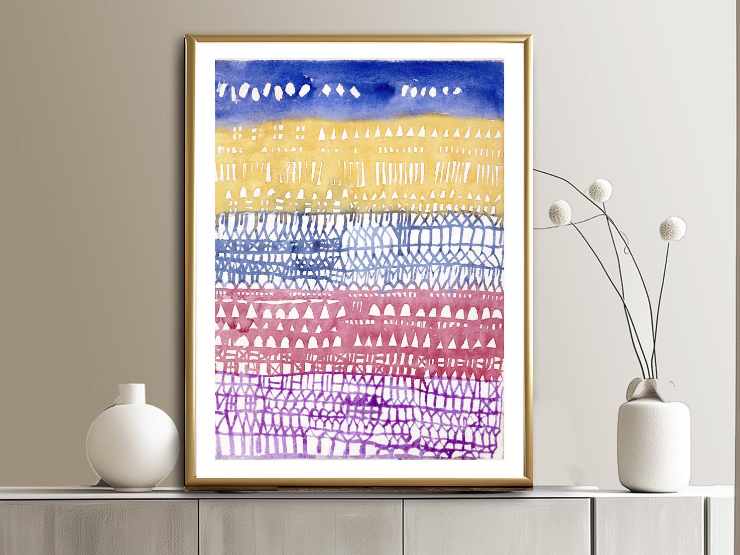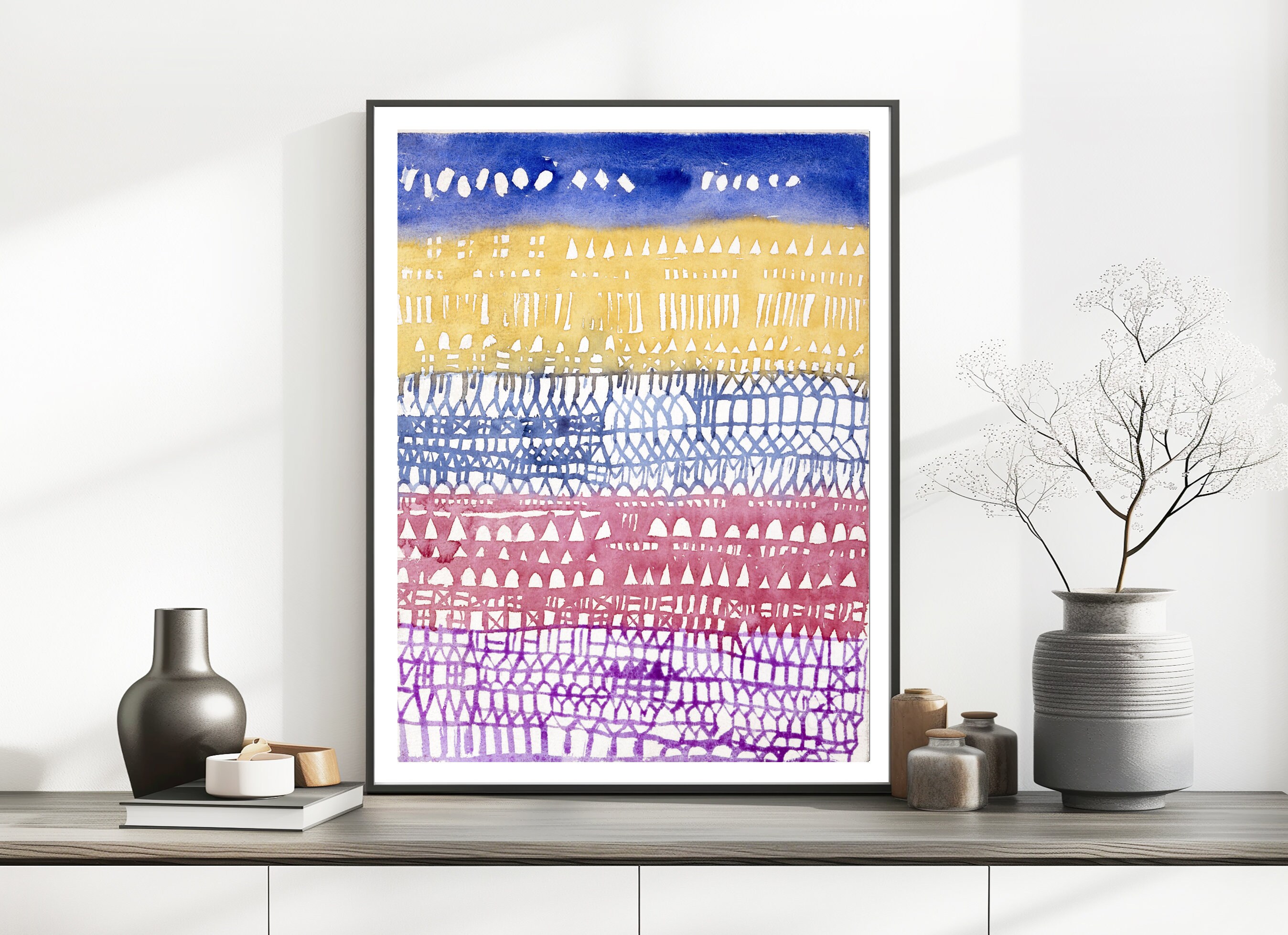 Printed on high quality paper, cotton canvas or adhesive sticker paper. A high quality reproduction of painting by Paul Klee. Professional packaging for safe shipping. Natural white border will be added to the image for mounting and framing.