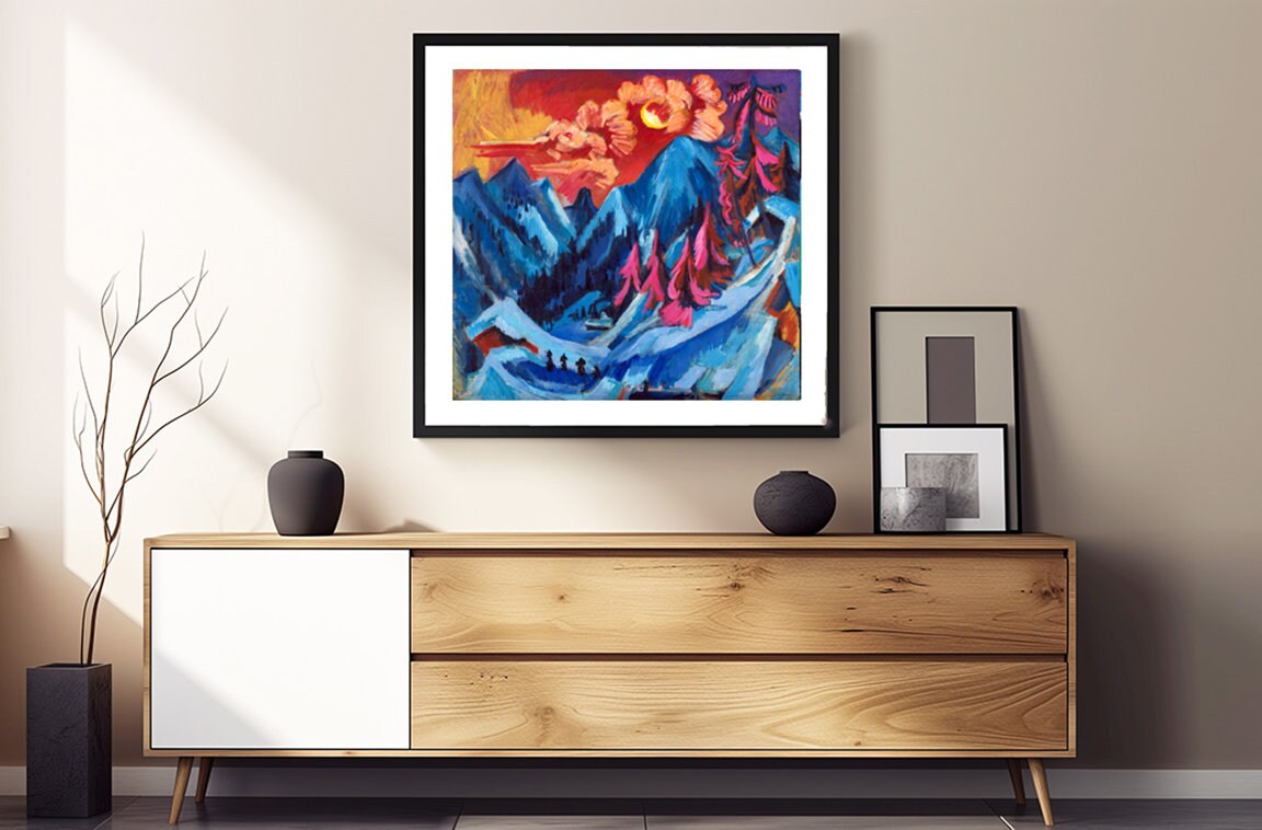 Printed on high quality paper, cotton canvas or adhesive sticker paper. A high quality reproduction of painting by Ernst Ludwig Kirchner. Professional packaging for safe shipping. Natural white border will be added to the image for mounting and framing.